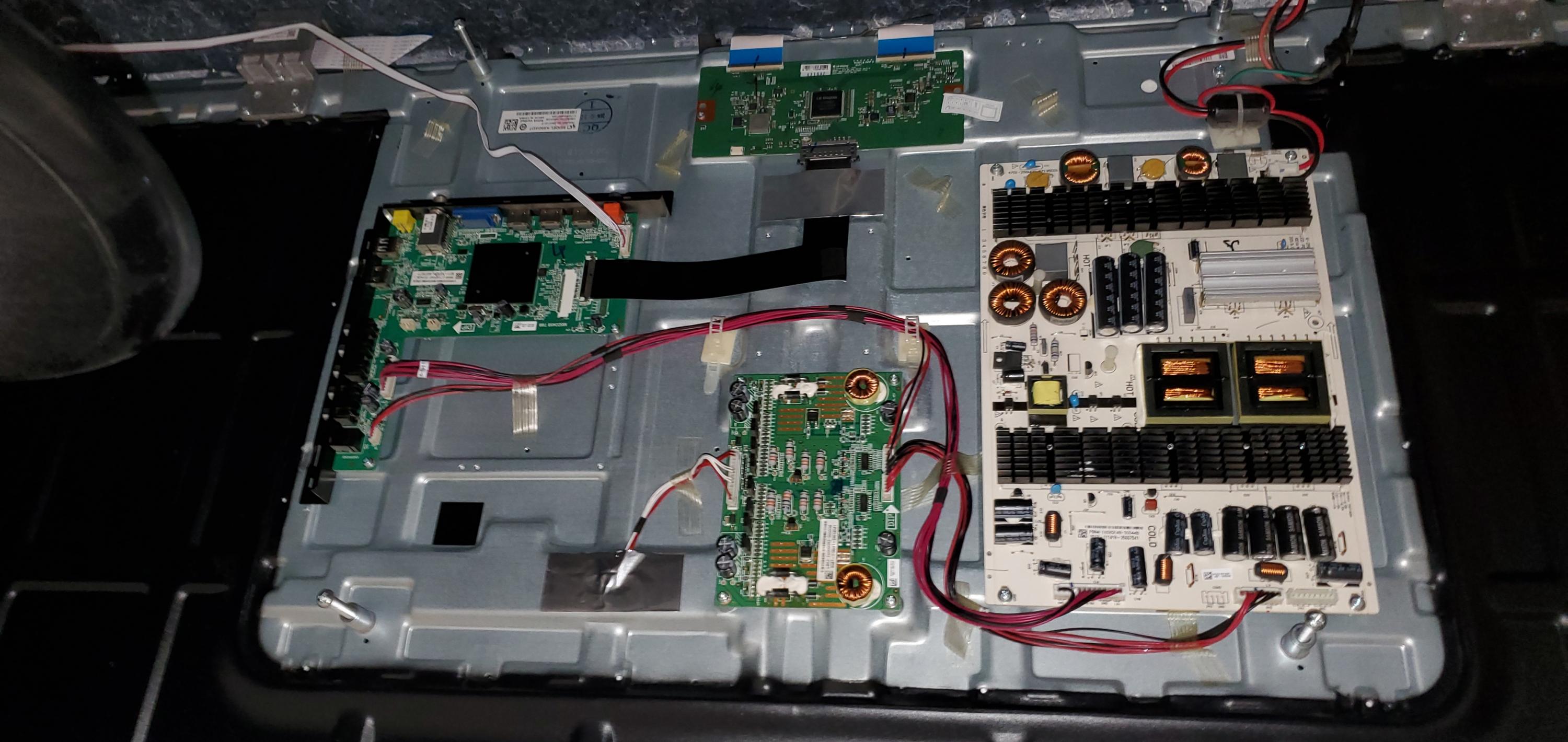 What I Have Done So Far: 1) Removed the back TV cover to expose the boards (Power Supply, Tcon, and Main), 2) blew out any dust and cleaned all connections, 3) Noticed that the LED backlights are fed from two separate connectors... -