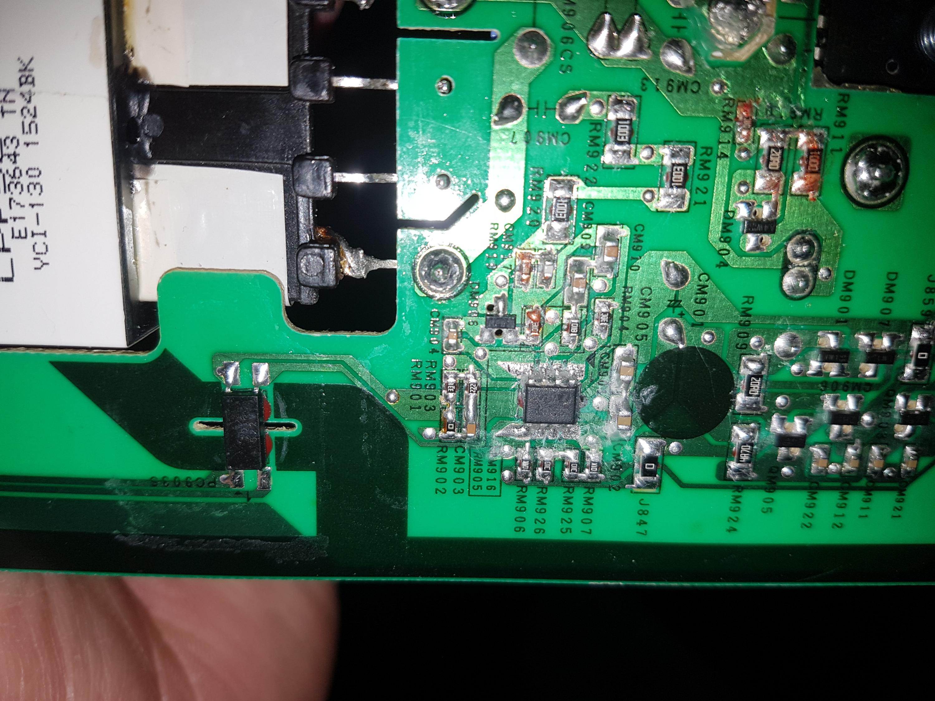 One thing that was mentioned by my mate is that prior to replacing smd rm914 its pads with nothing in place were reading 100ohms and still reading 100 ohms after he installed a 01c resistor (10k).