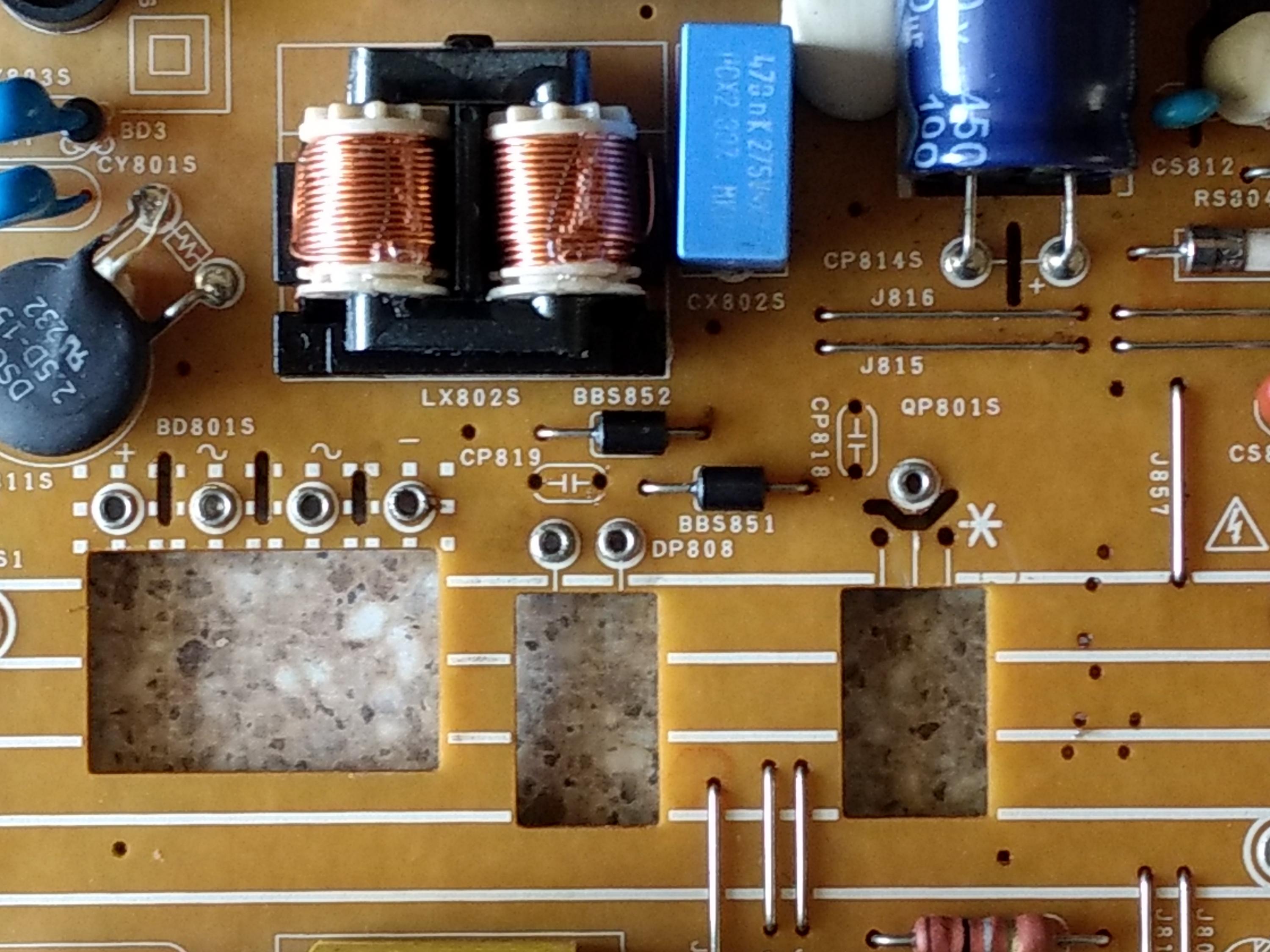 CP819 appears OK (at least not short anyhow), but CP818 was blown to smithereens. There's no getting a value from that one! It looks like it even caught fire as there was a smoke trail and soot on the board from that cap up!