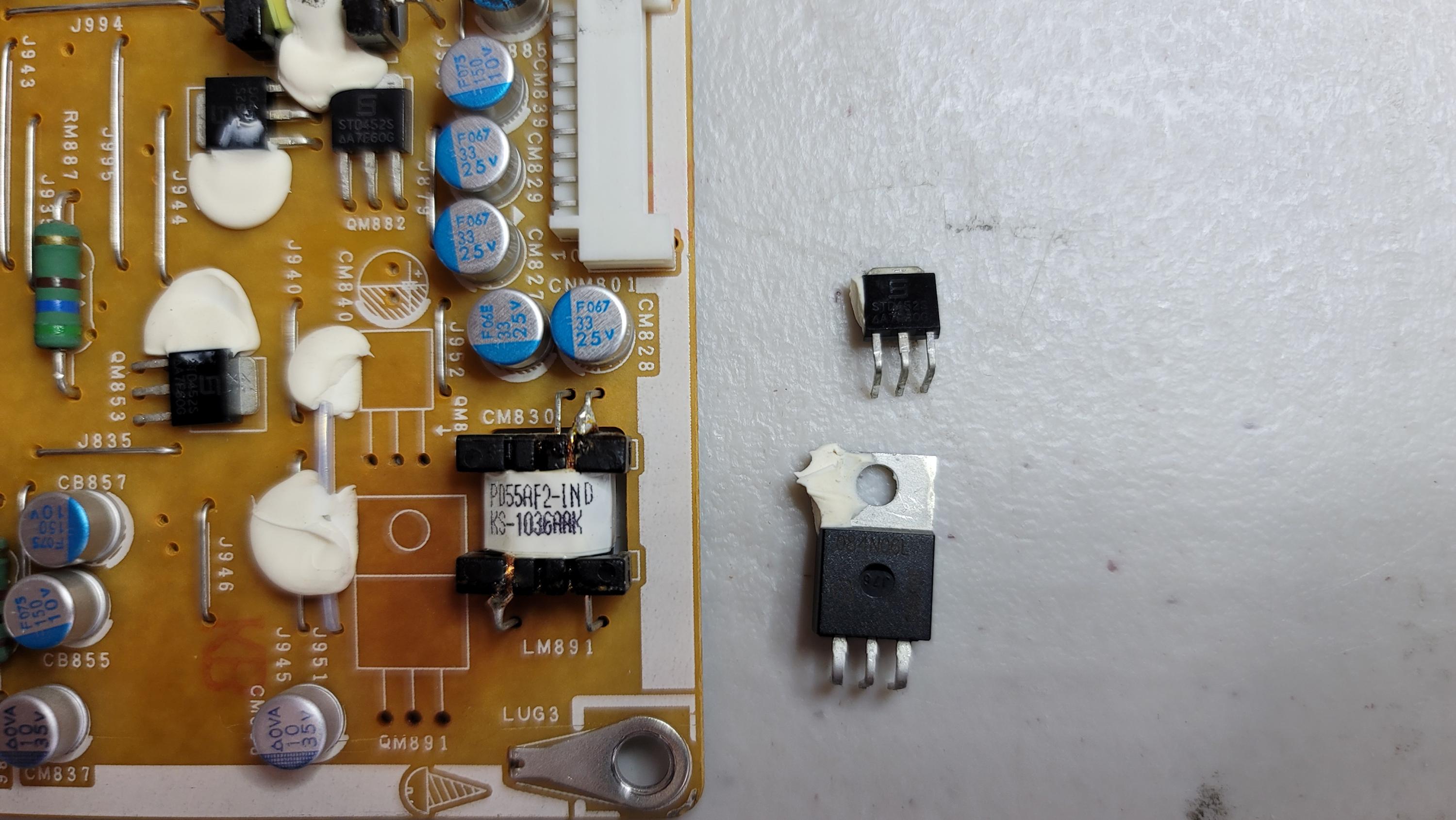 I have a UN55C8000 with a BN44-00363A Power Supply. Normally it would have a cold solder like in this video https://www.youtube.com/watch?v=GOa6WQpus6E but my LM891 did not have a cold solder. In that same area there was two transistors that was short and a diode.