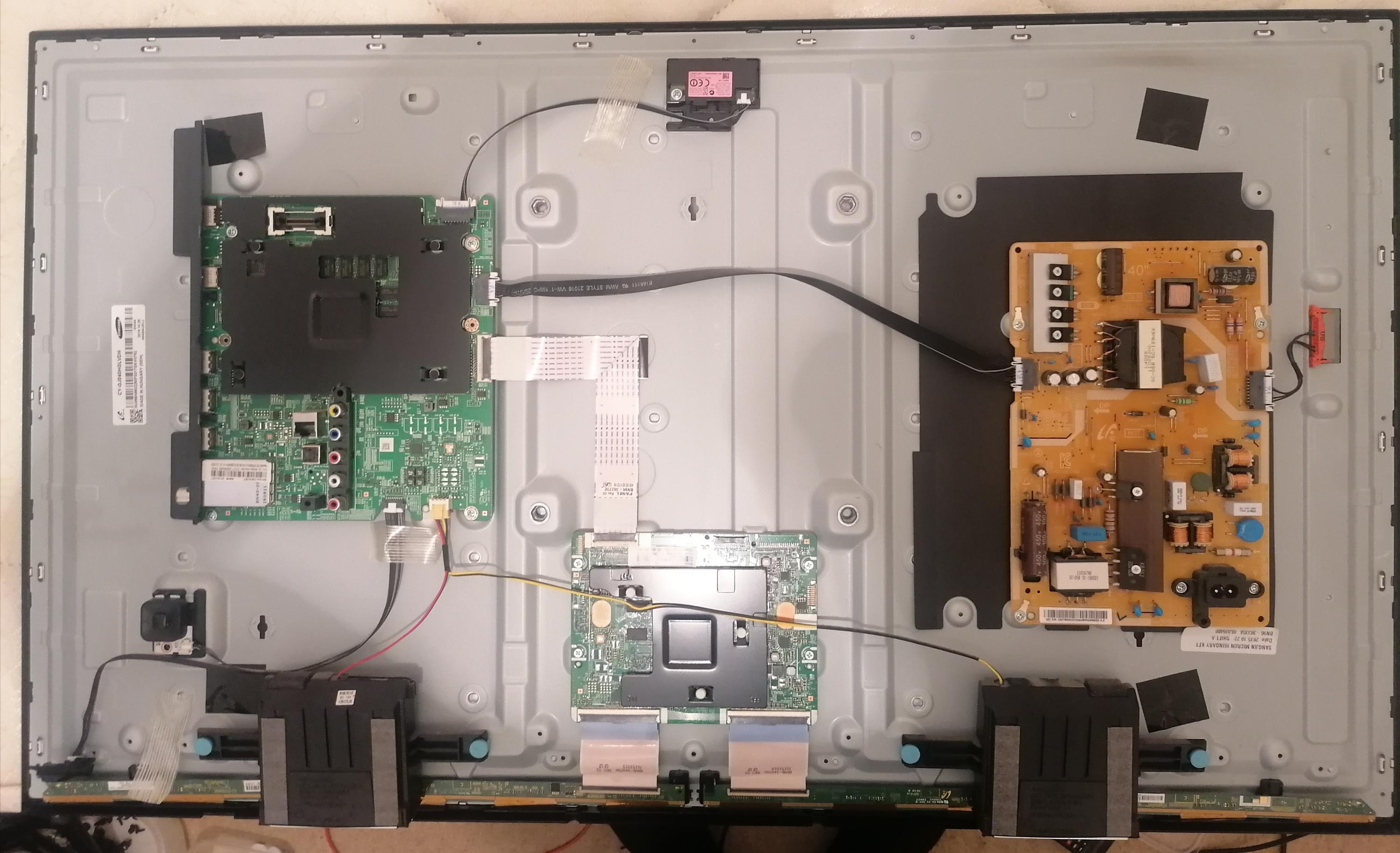 I got a Samsung UE40JU600K the other week and was told it needed backlights. I stripped it down, and tested backlights and there were a number of LEDs not working. I ordered a complete new backlight array, which arrived yesterday, fitted, switched on and all seemed fine, so reassembled TV, swithched on, and no backlights!