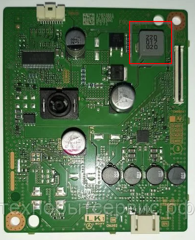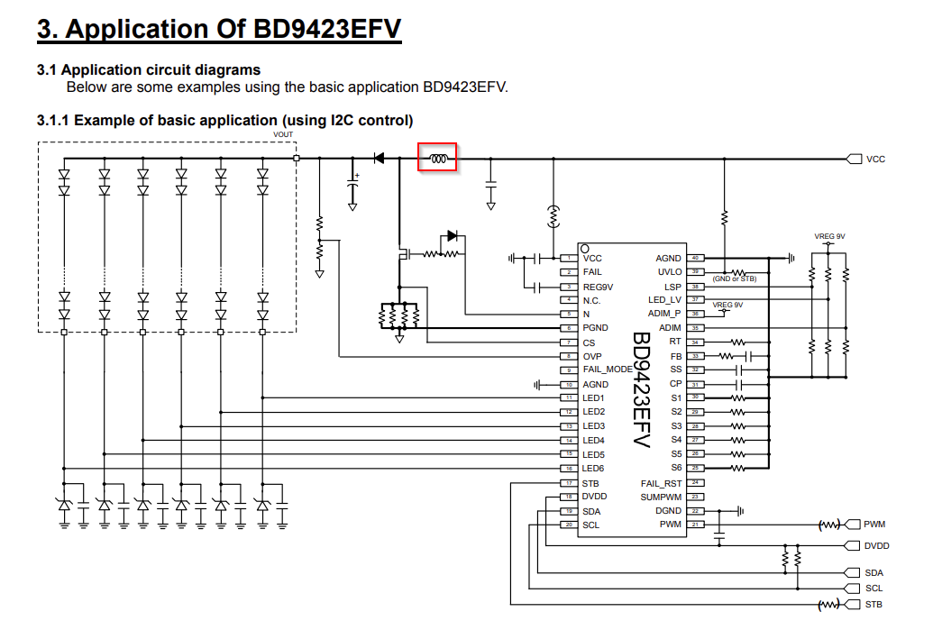 Attached the picture of the powerboard and diagram from datasheet of driver IC since I cannot find schematic for this TV. The inductor is marked with red.