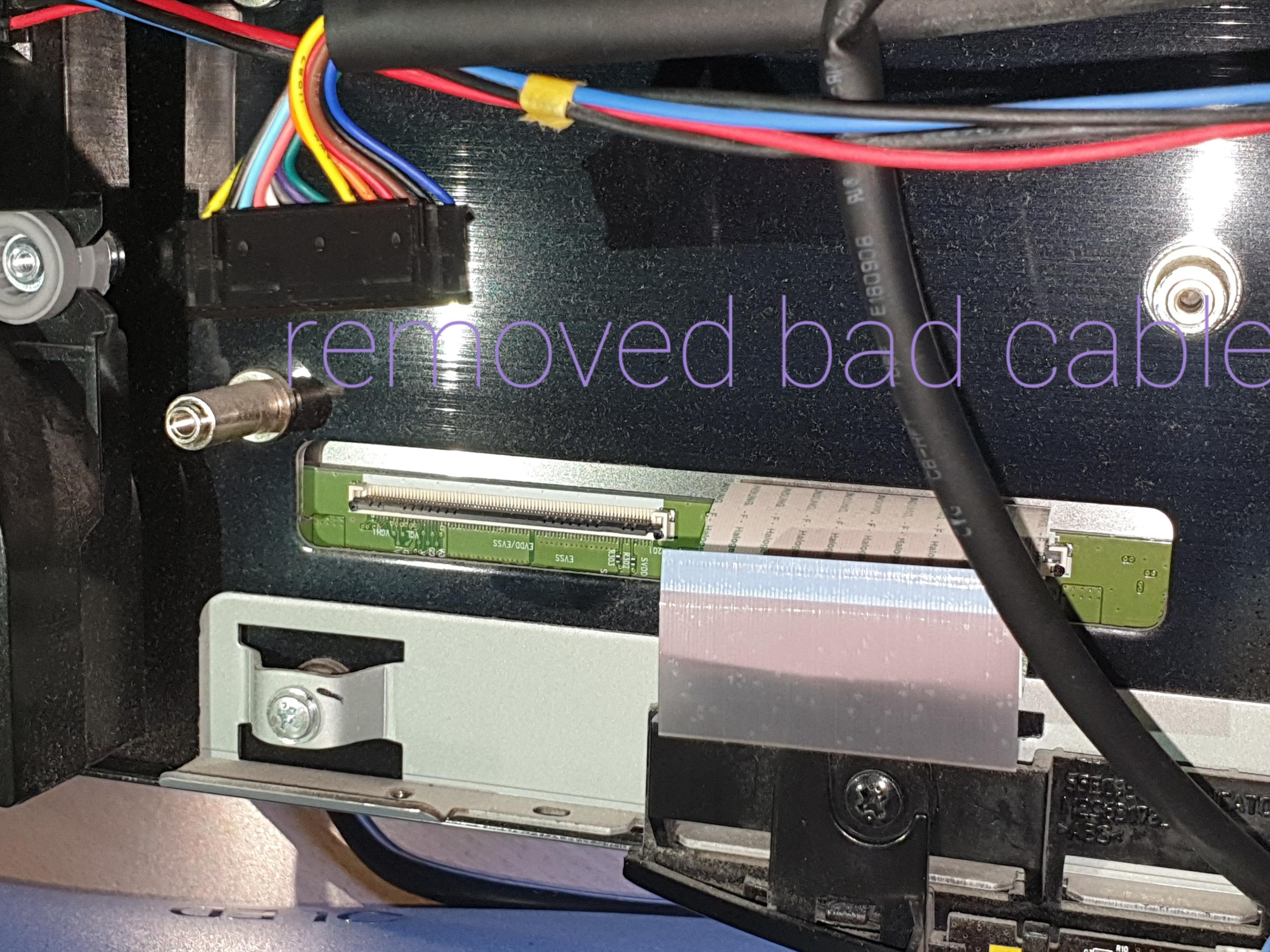 Back to 2020, where the tv died, i coulnd't turn it never on again. This year, where my Grandma wanted to fix it, i looked at the TV, and bought new Mainboard.TV turning on, but cable broken. bought 2 news cables, tv turns on, but turns off after 10 Minutes. You see the issue at picture 2 and 3.