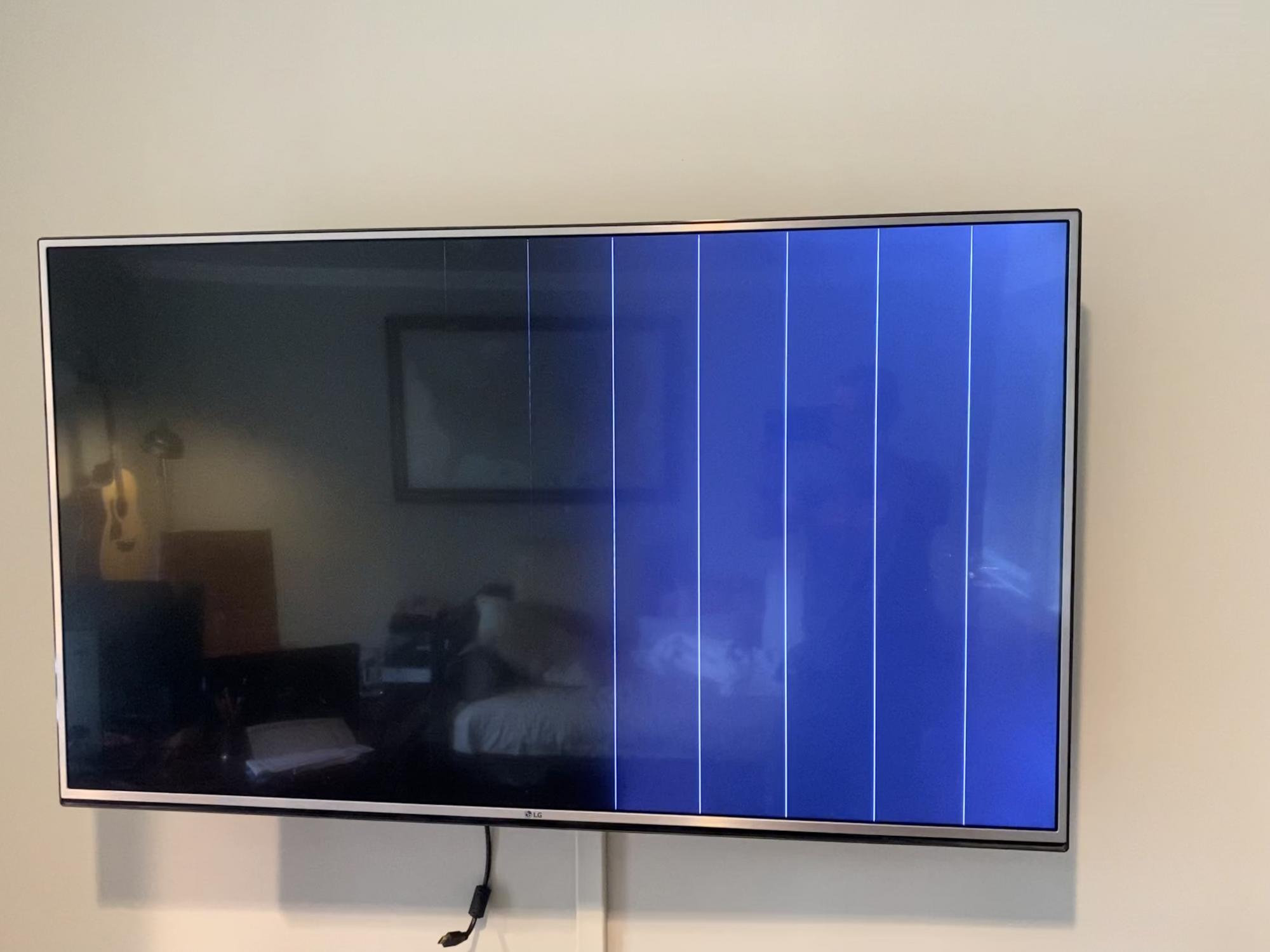 When it is plugged in the red light at the bottom flickers on and off. It also appears that only half of the screen is trying to turn on, but again it flickers on and off. when the screen flickers there are several vertical white lines appearing also.