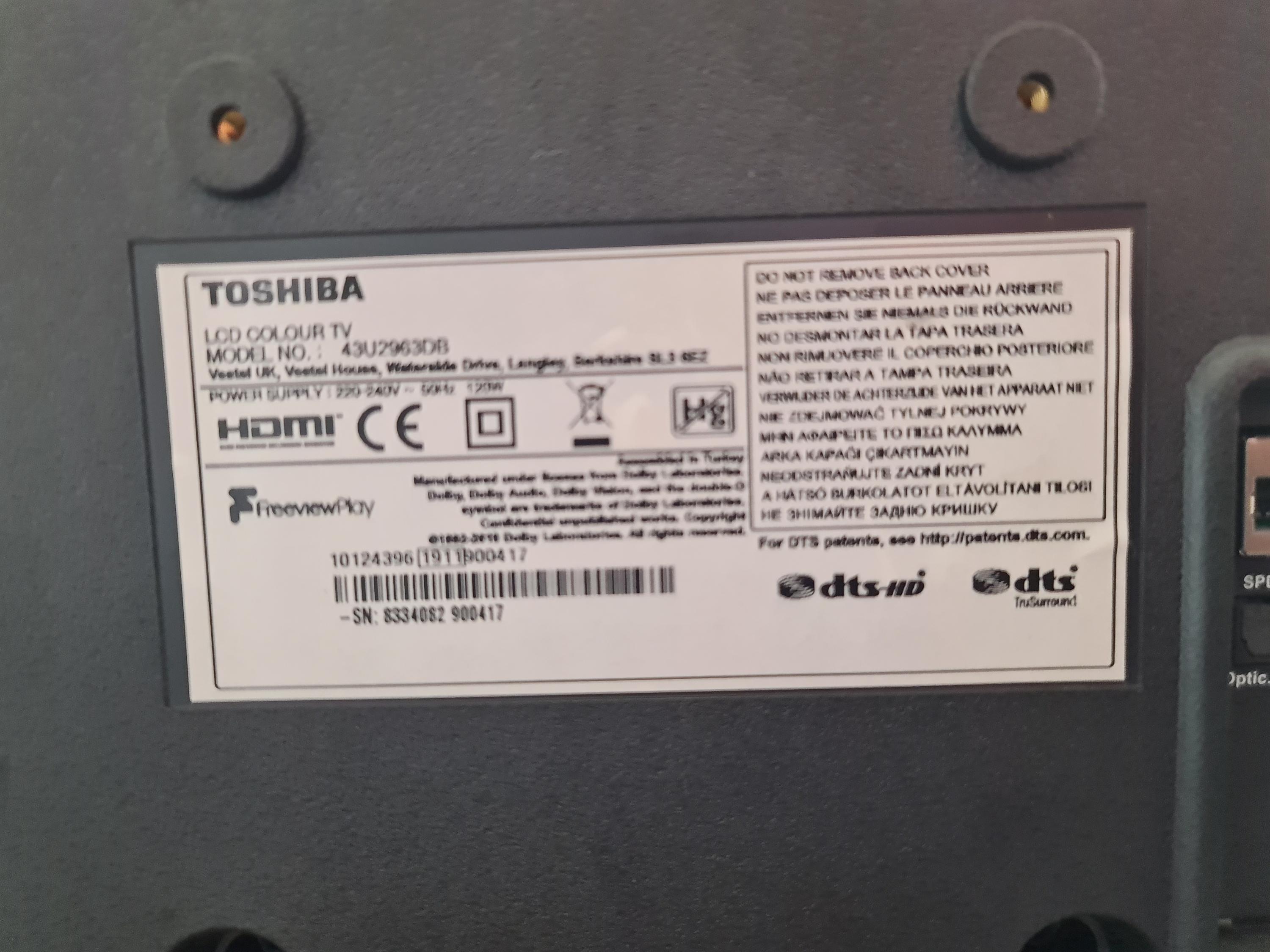 I've an issue with a set I've just received from a family member hoping to repair (model: TOSHIBA 43u2963db). It's seems to be a Vestel unit on the inside :'( ... There's sound, but no picture. I've pulled the panel, tested power running to all components (even past the t-board, well 3v on test pin 4_0...). I've also *tried* giving it a reflash, although I doubt this is an issue I can't seem to get it to enter the correct mode (hold ok on remote and then plug in with the USB inserted containing the necessary files). The TV will create a folder on the pen drive "DVR" when it powers up, after passing the red/green blinking sequence.