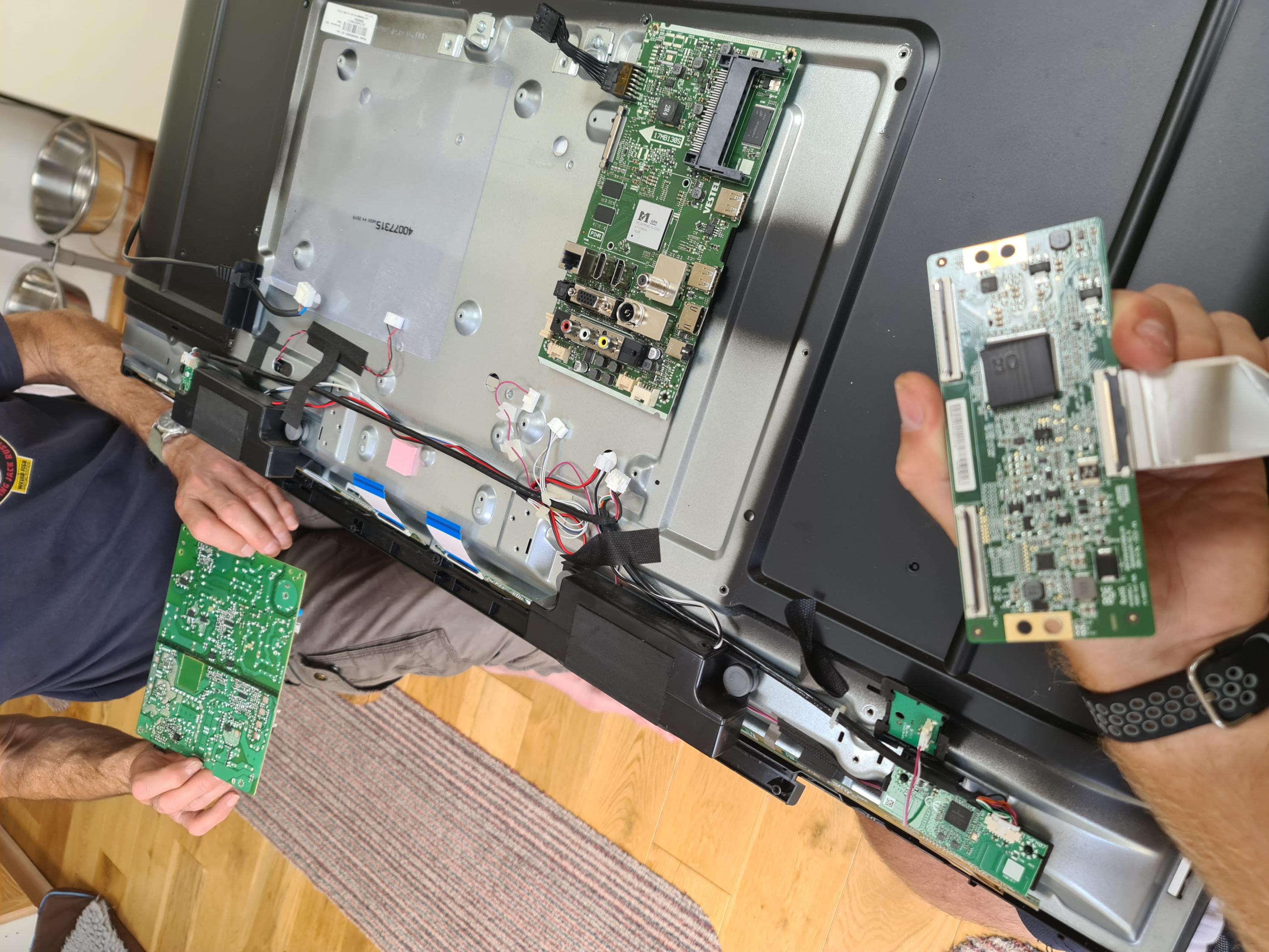 Backlight powers up fine, sound even works (can hear the menu of a firestick when I plug it in to test) which suggests to me that the CPU/mainboard is operational, but for some reason isn't displaying? I was told that the TV was in semi-direct sunlight (during the current UK heatwave) and was turned on, but powered off around half hour later placing it into this state.