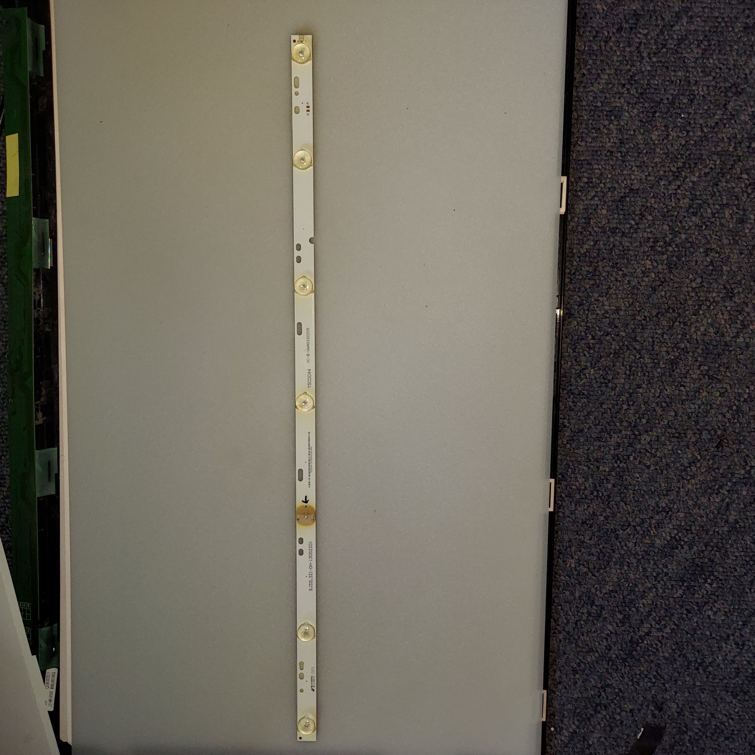 If you look at all the LEDs, the lenses are all yellow and heat damaged and the strips should be replaced with new. With these low end, white label TVs (RCA/Element/Haier/Proscan/Westinghouse), new strips are impossible to find. With low resale value and no availability of new strips, I don't bother with them anymore. The part number usually has the screen size embedded in it. Shopjimmy shows out of stock but even for $30 plus shipping, it is more than the value of the TV (32" non-smart). Replacing the single bad LED is a temporary fix since the remaining ones are likely to fail.