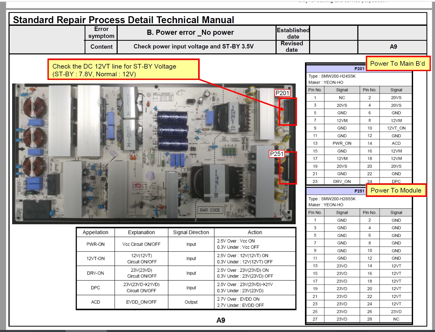 First thing I want to do is test the power supply. I have a picture here from a manual that I found thanks to this forum, but no sure how to test everything. It says to "Check the DC 12VT line for ST-BY Voltage (ST-BY : 7.8V, Normal : 12V)".