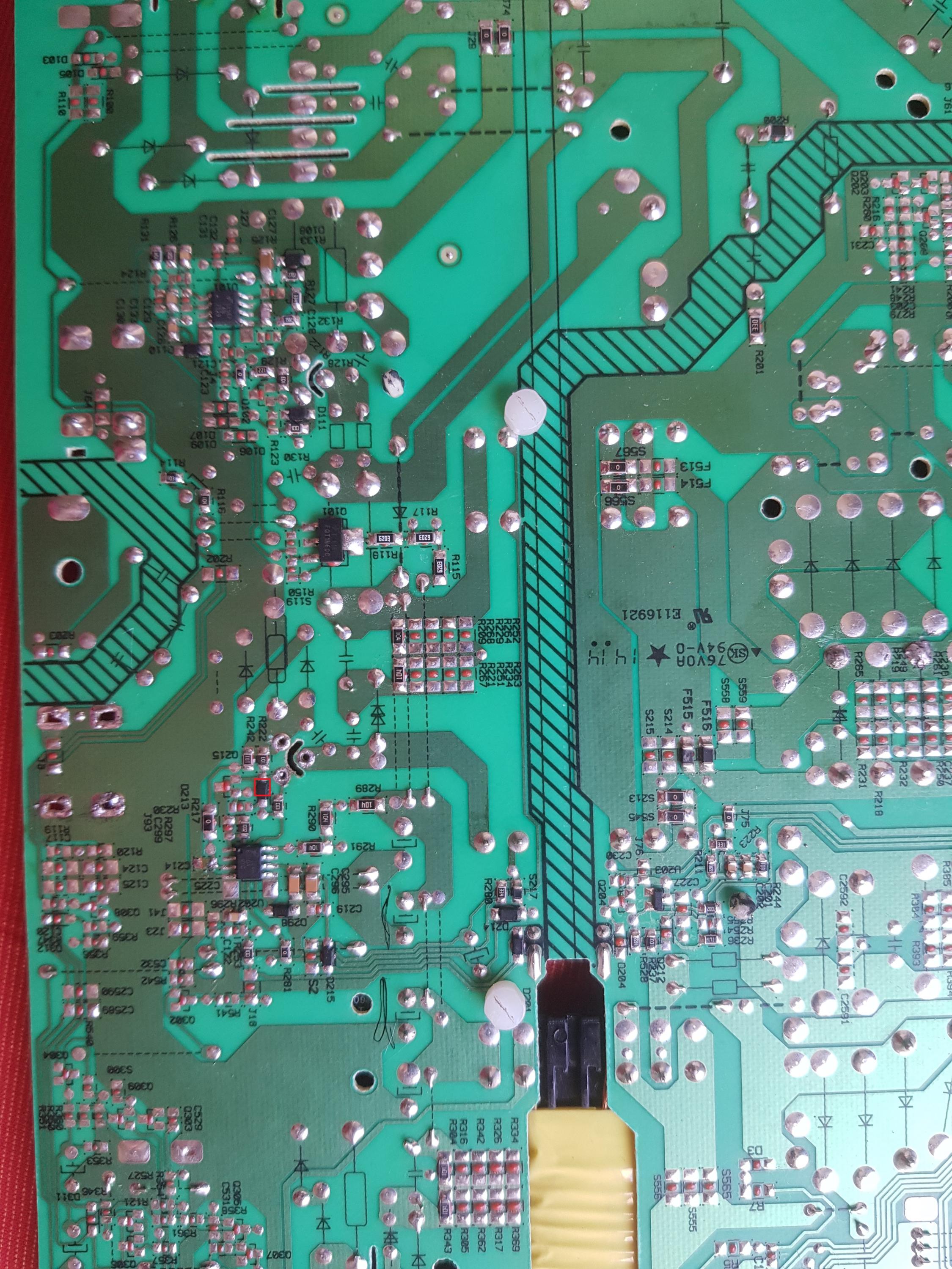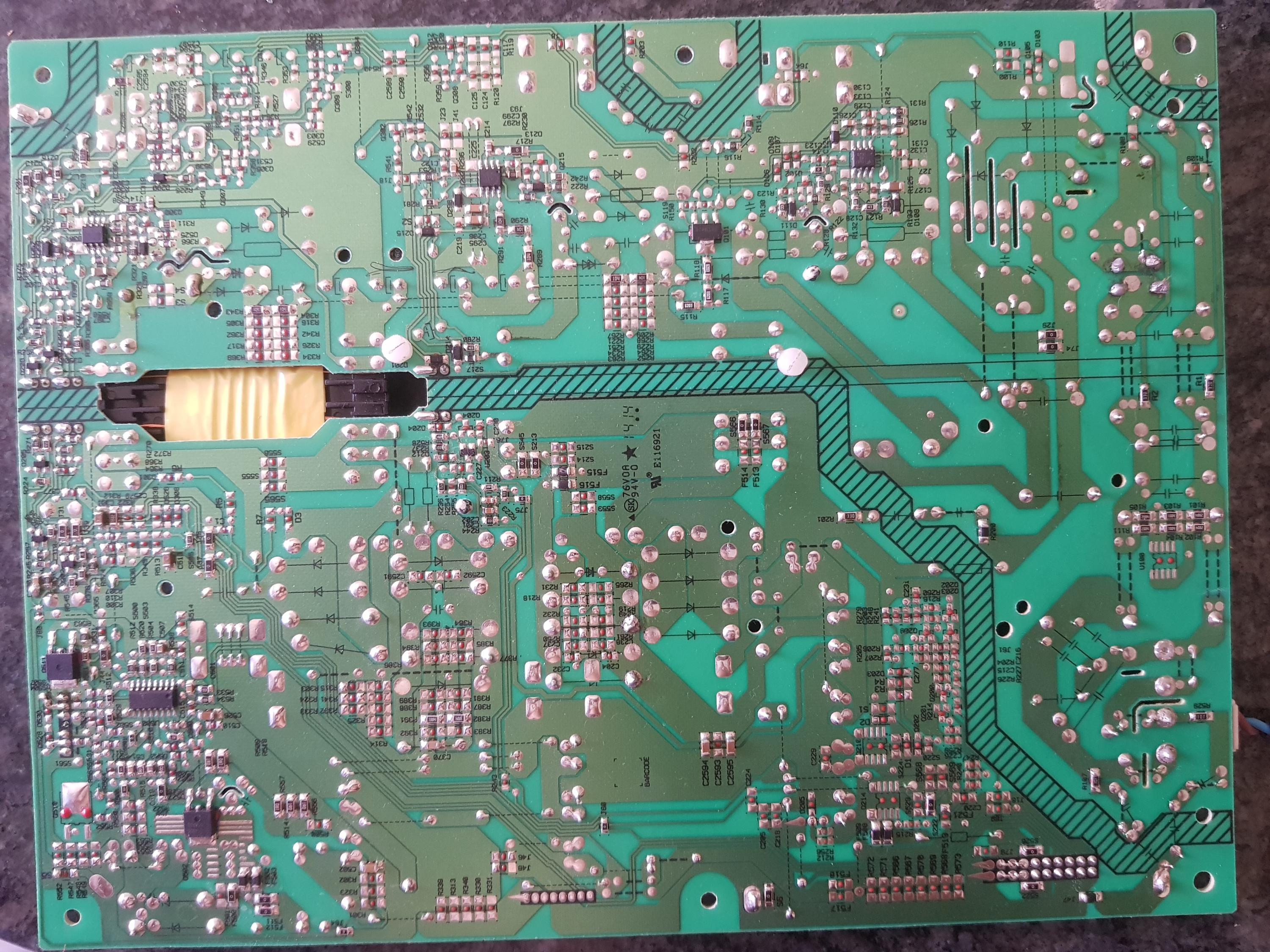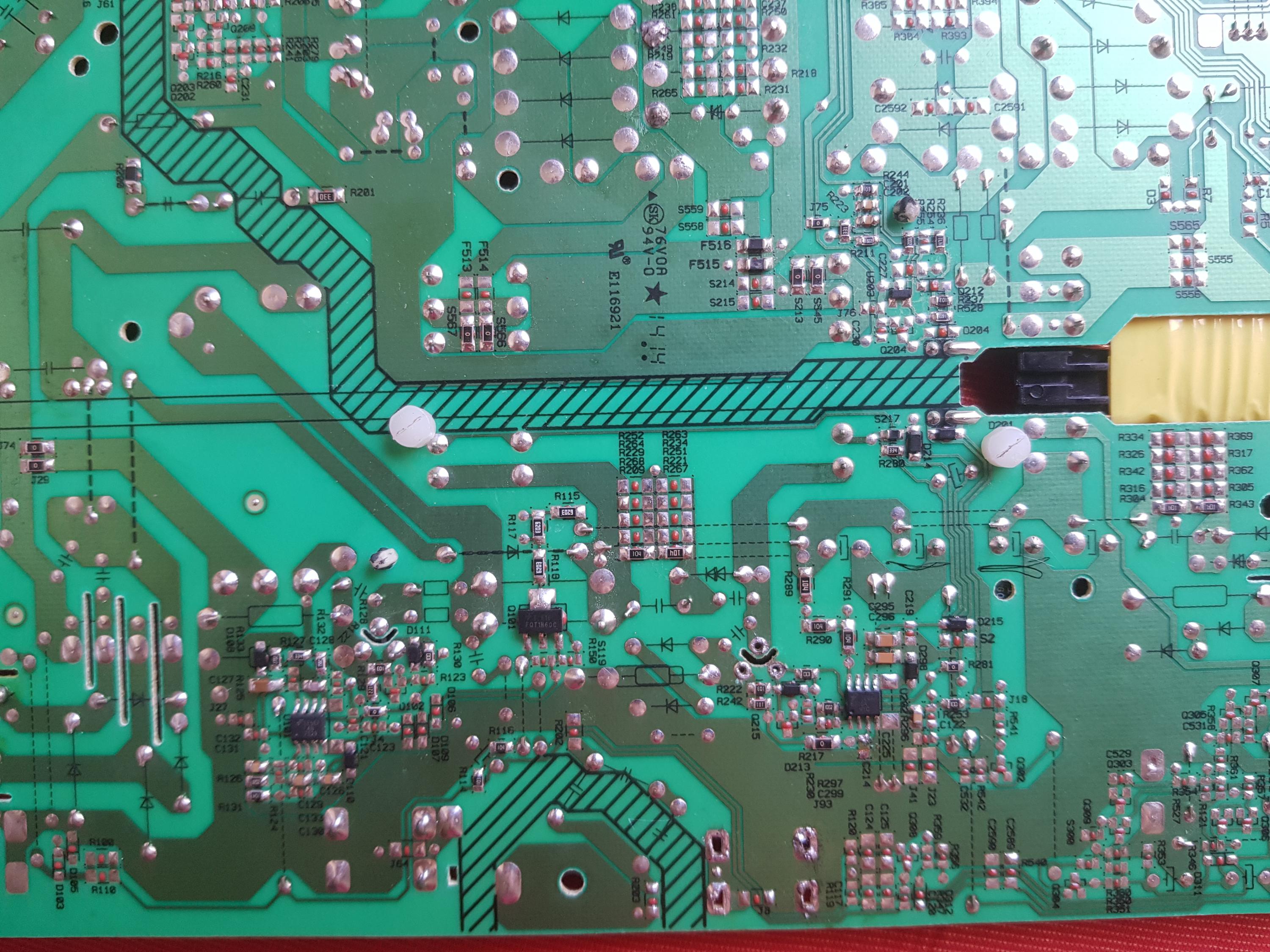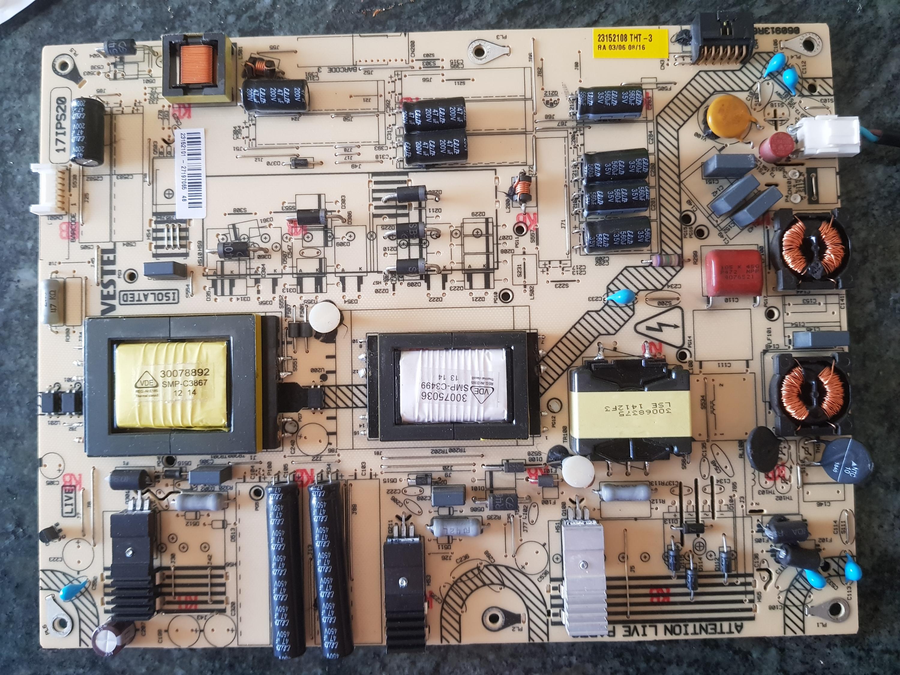 Got this 40" TV off the tip and the power board has a problem, previous attempts have been made with the replacement of the thermo resistors.