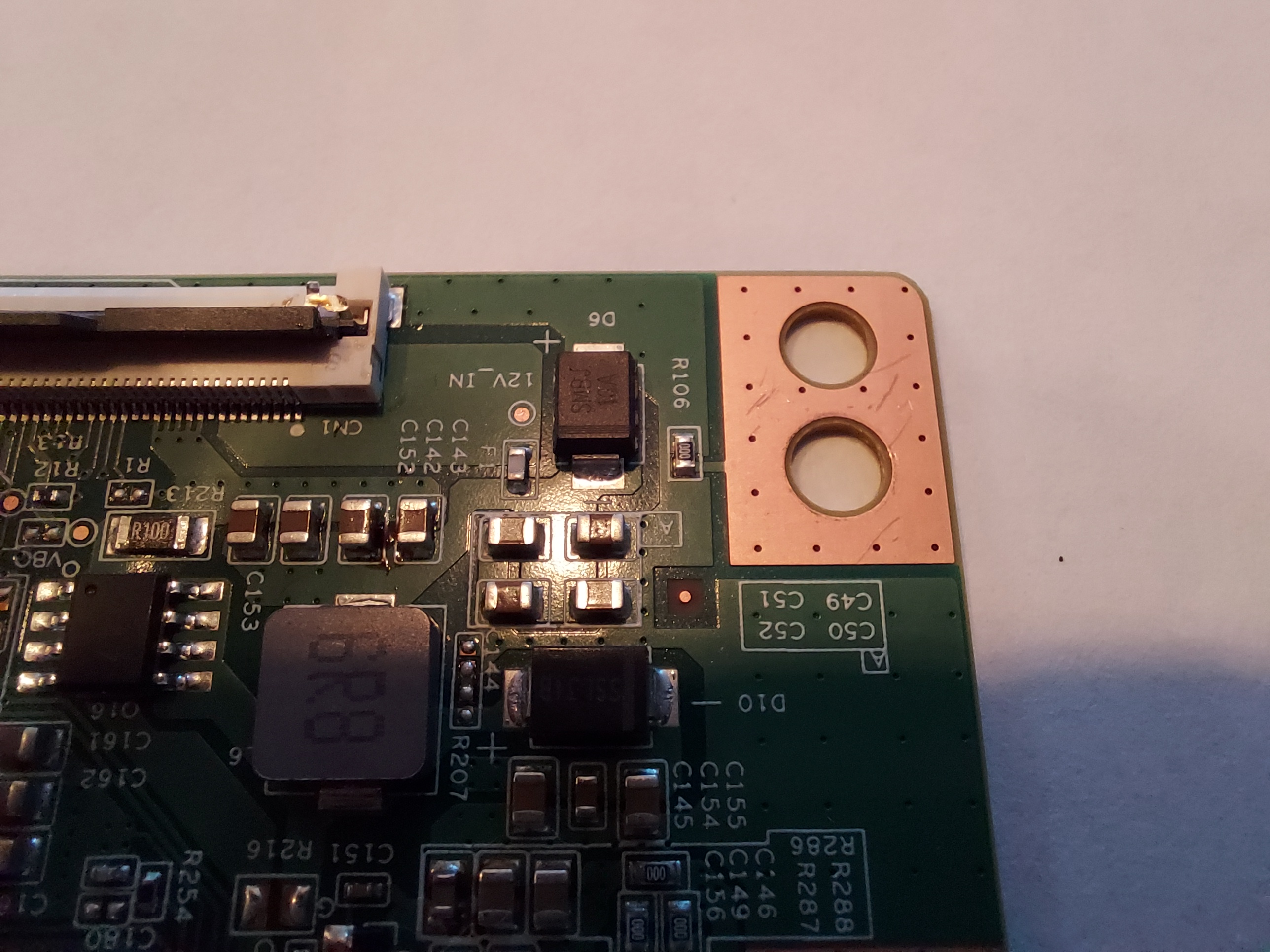 Yeah, I'm def not an expert on this stuff... Yes, diodes are supposed to let voltage flow in one direction only. The confusing thing is that I have 0V on the + side, but 12V on the - side. I'm pretty sure I'm just wizzing in the wind with this thing, but I would like to learn something. I can get a T-con board on the big auction site pretty cheap, but if that's not the problem, or if the screen is also completely blitzed then there is not much sense in replacing it.Last edited by cozwurth; 04-19-2023, 06:22 PM.DaveComment