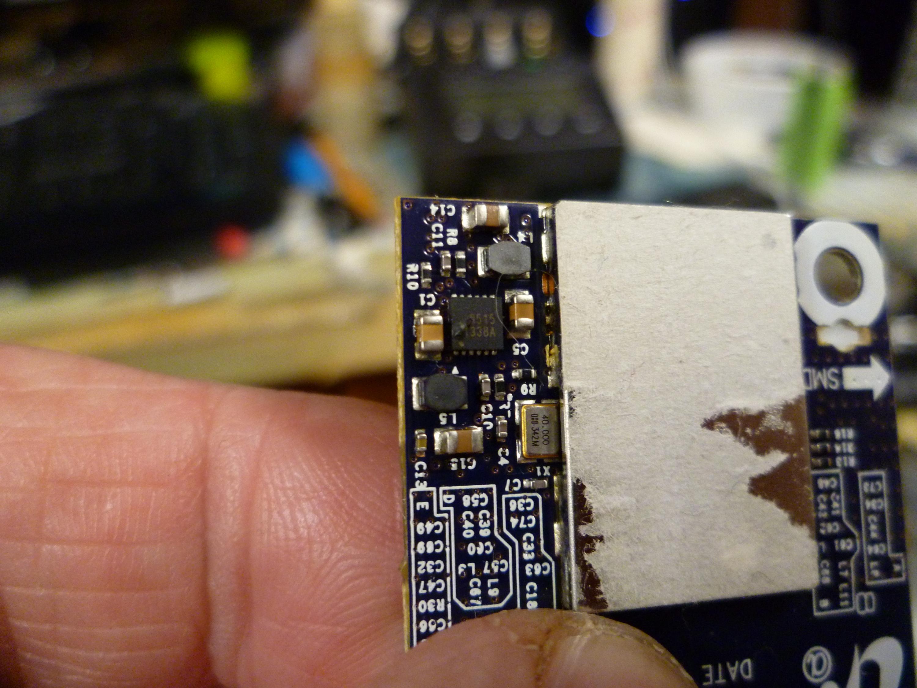 That could be a thermal issue, I measured 2 caps shorted (0 Ohms) beside the chip (+3V_WLAN according the bordview), but not since (so I have doubt what I saw). After, I measured 50 Ohms when battery plugged and K Ohms...