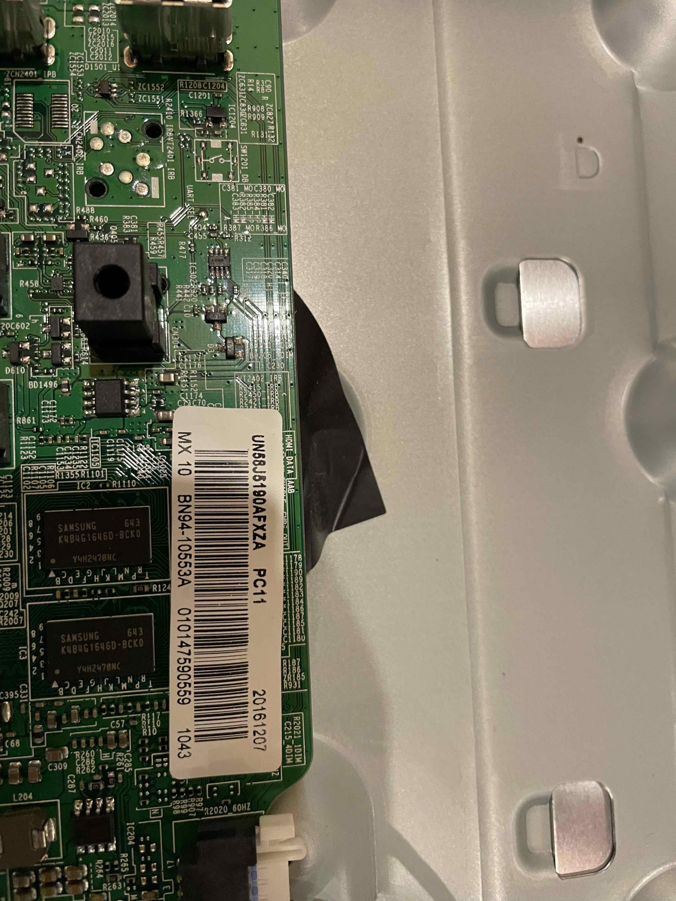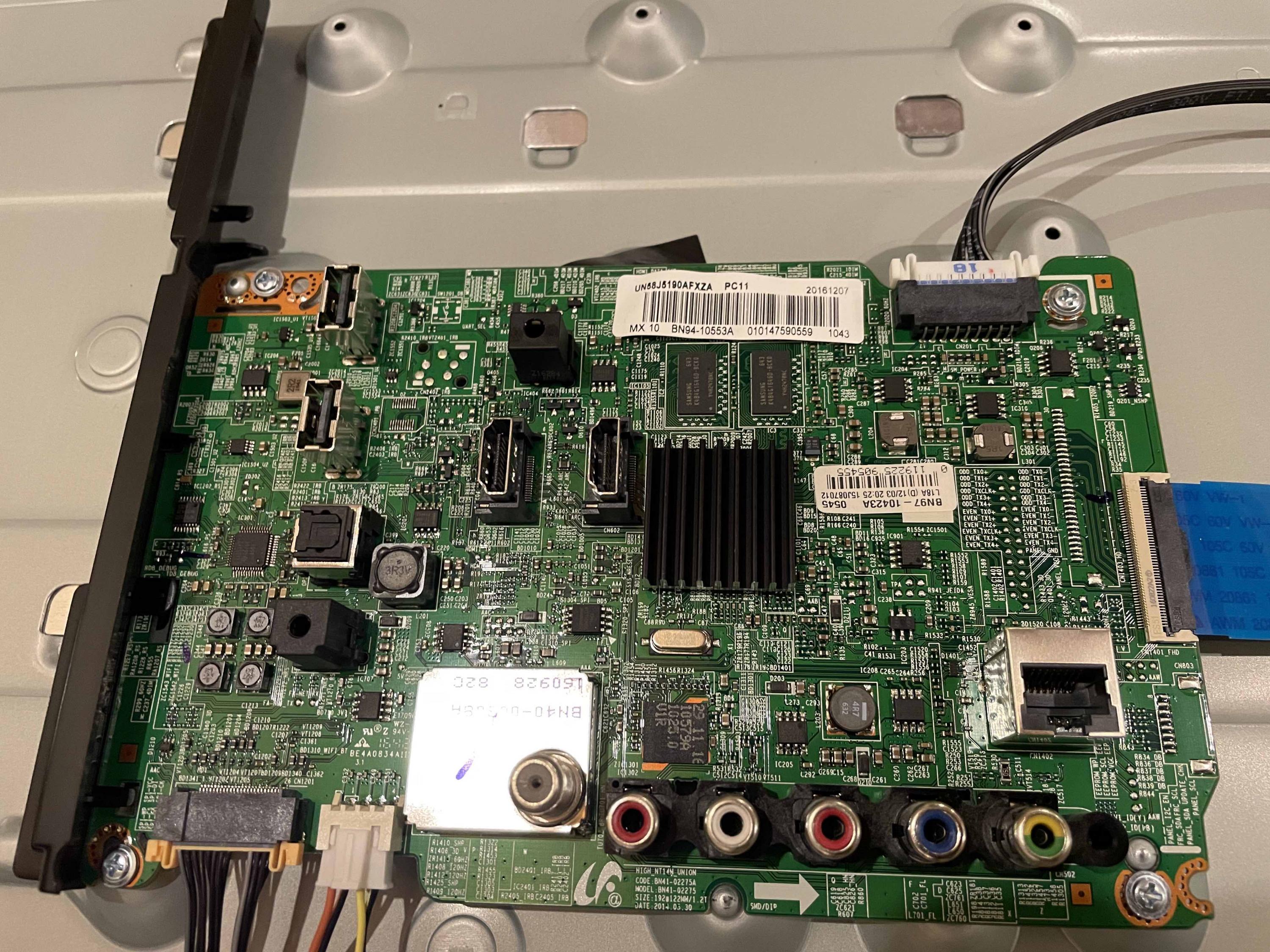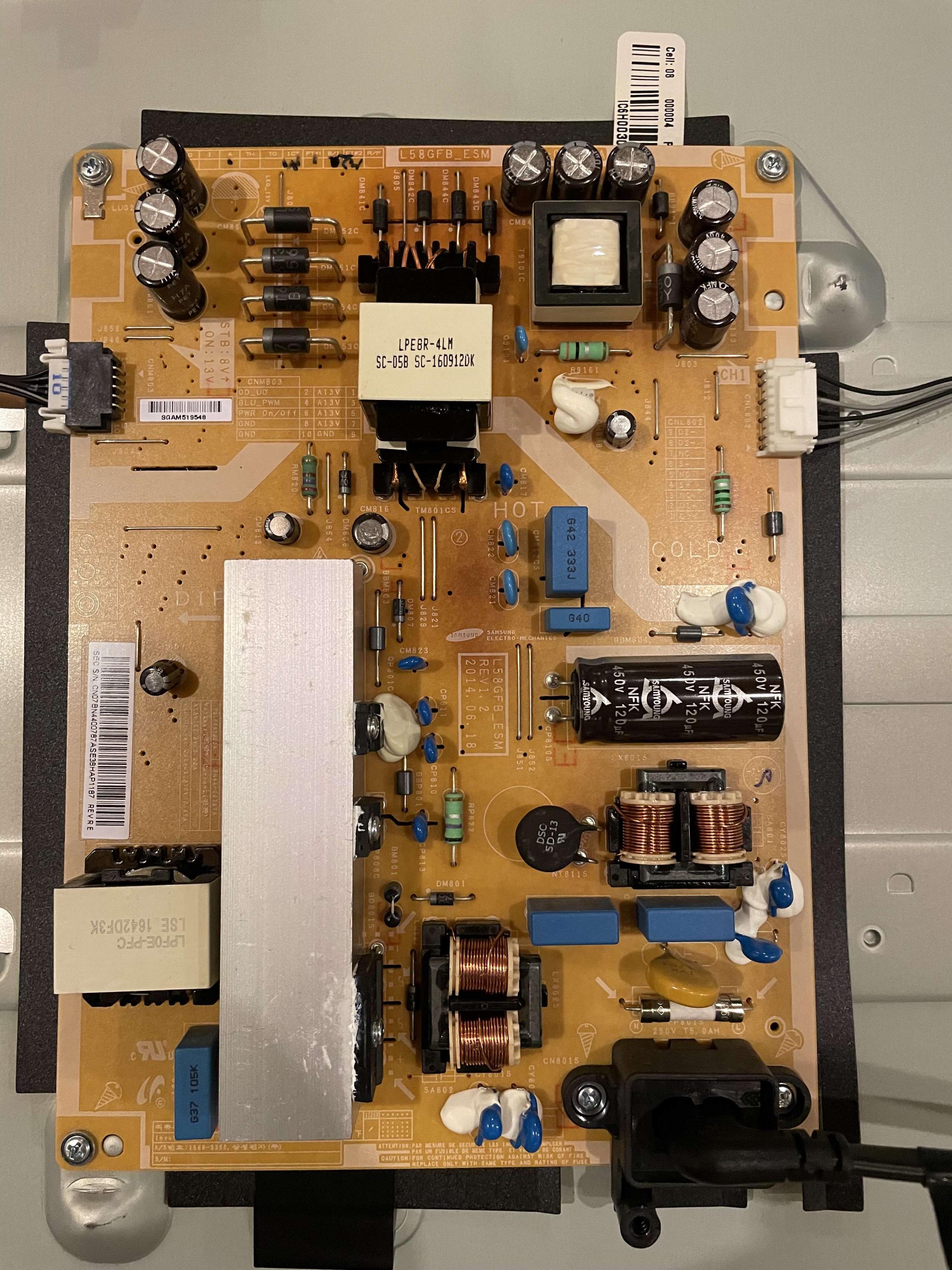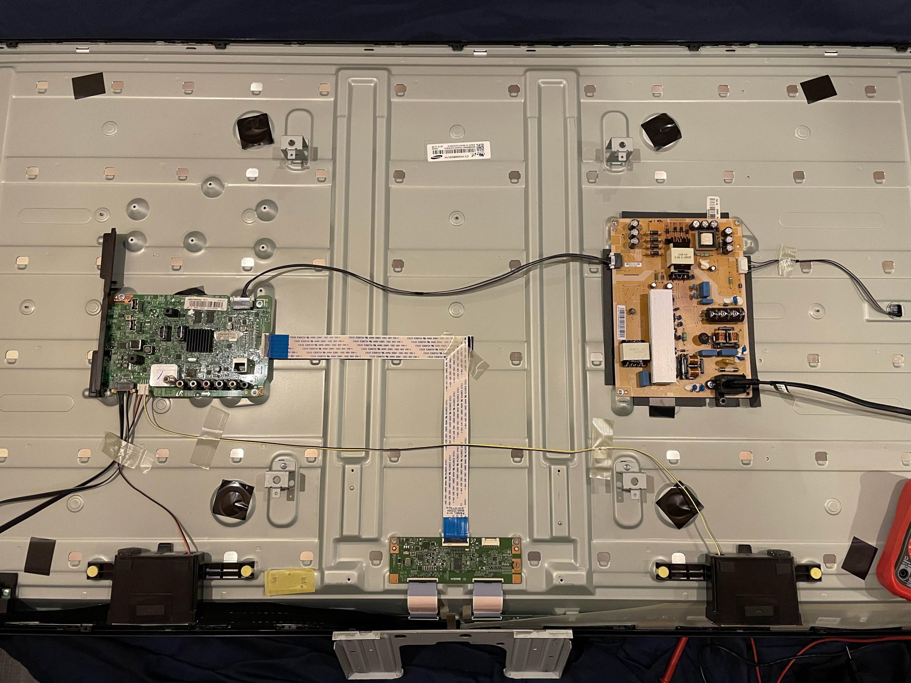 Hey everyone - I have a Samsung UN58J5190 with these symptoms: Does not power on, has standby light, standby light blinks 5 times after pressing "power on." When plugged in the power supply is making a very faint ticking sound, and this goes away when pressing power on.
