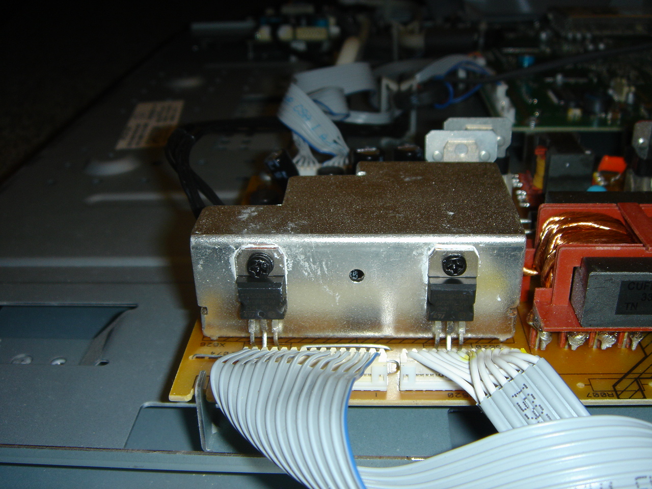 I just did some further testing and it shows that the power wire is not defective. I measured it incorrectly...Now I get 117VAC from the white plug and 117VAC from the white ceramic fuse. More pics of shots under the heat sinks and the logic board belowOriginally posted by tmwalshI *believe* PlainBill wanted to see the components attached to the heat sink, in addition to seeing what is under them.