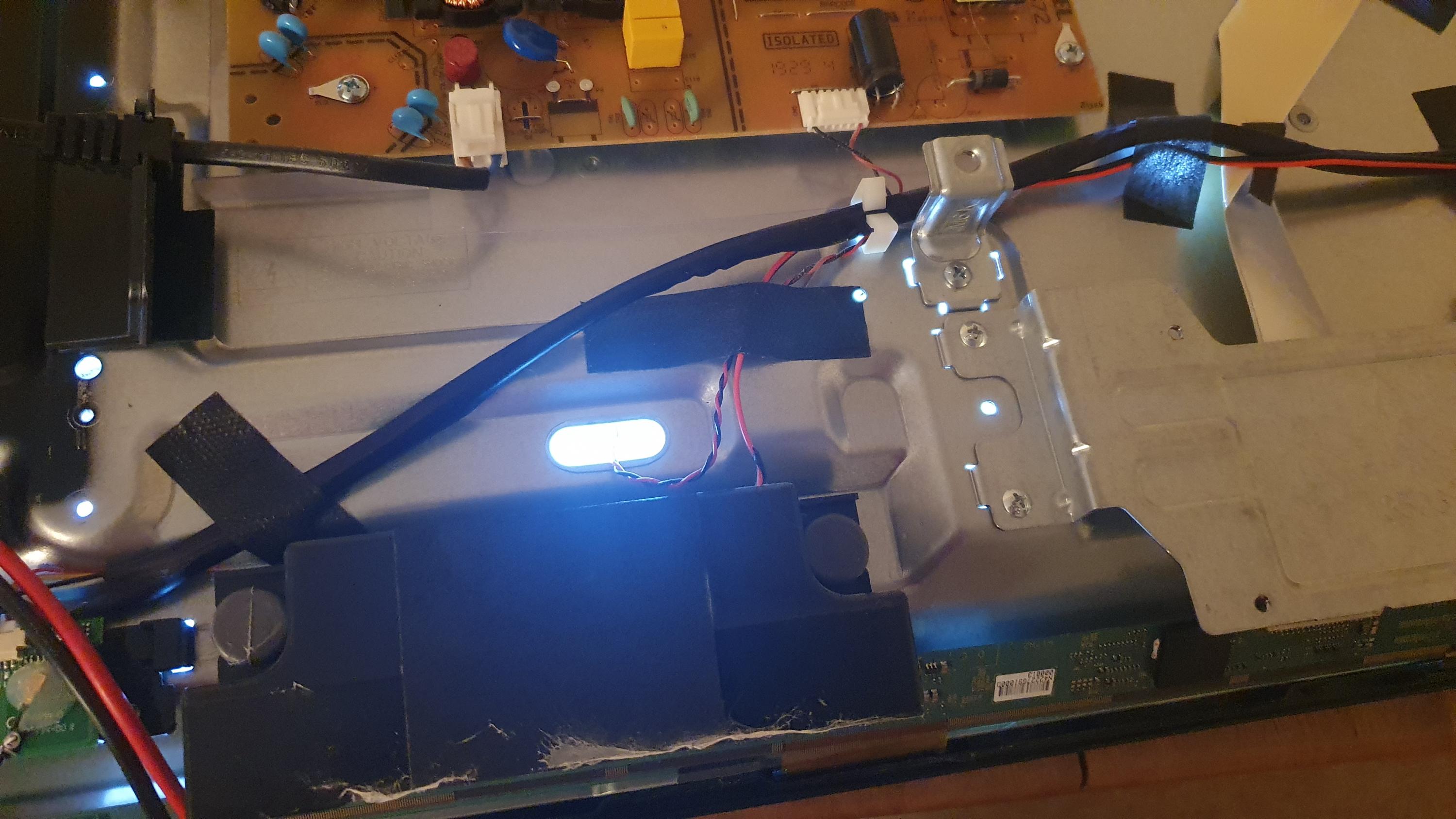 He had opened the TV from the back, trying to get to the backlight, supposedly gave up, reassebled everything and gave the TV to me.