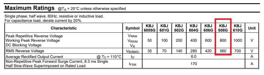 Bet any on 600-800V, 6-8A (KBJ608G).