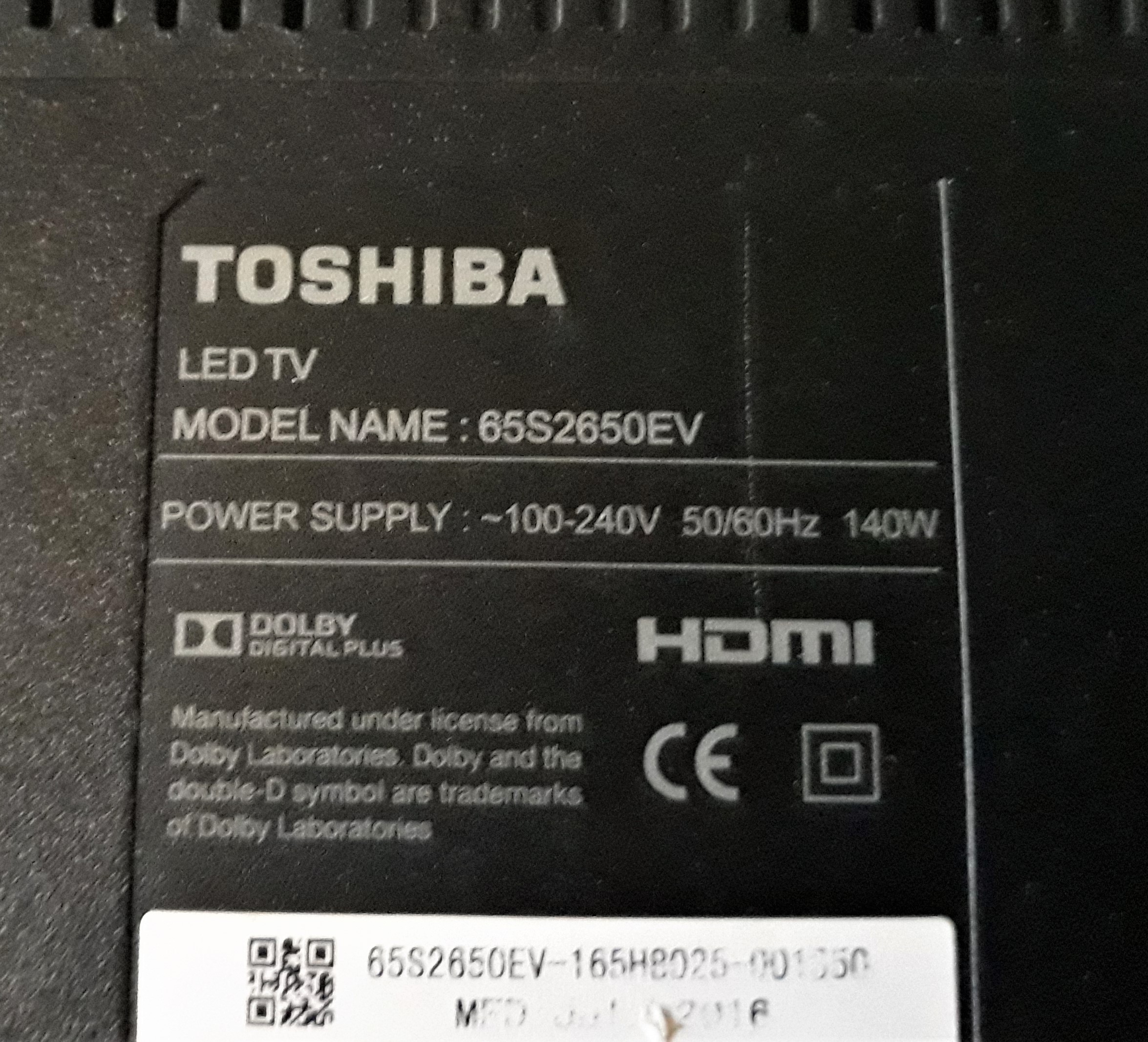 Can you dignose from the photo ? . Toshiba 65S2650EV