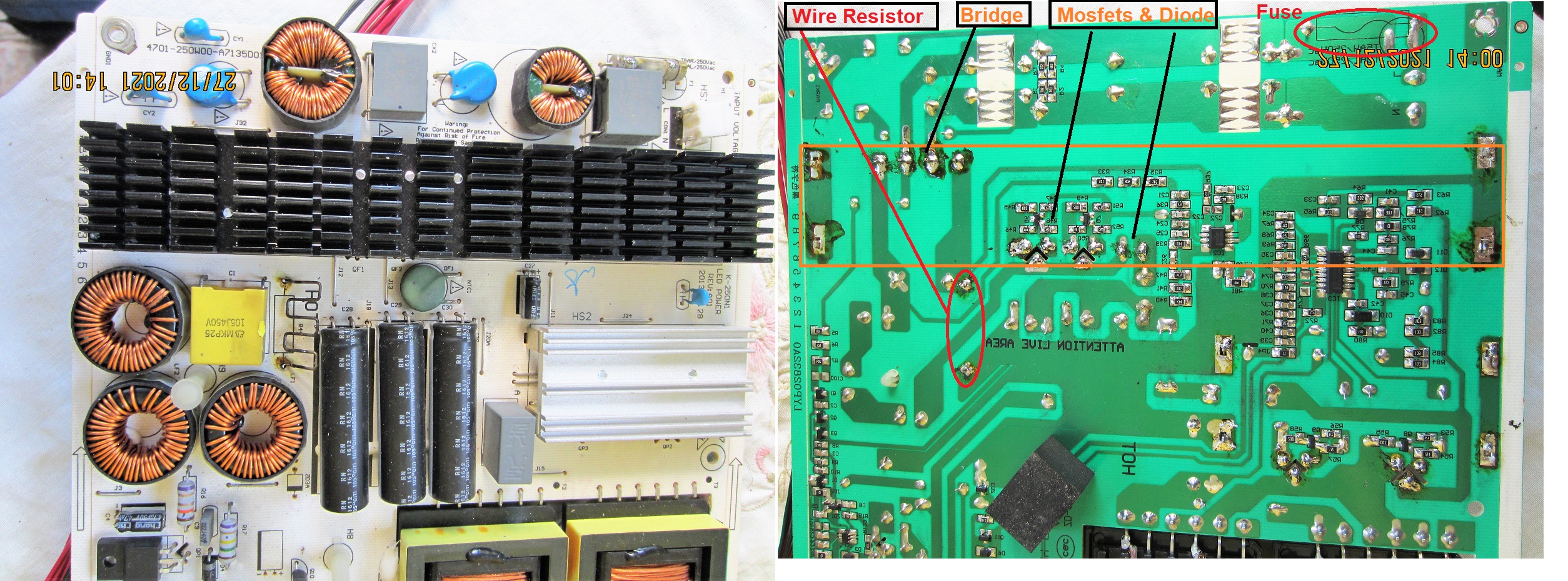 Anyway, I found the two 11N60E are strange. While I don't see any short , I can't "turn them on" , like , I get 0.L everywhere , only D-S shows 0.5V ( one way ). Maybe I have replacement, we'll see