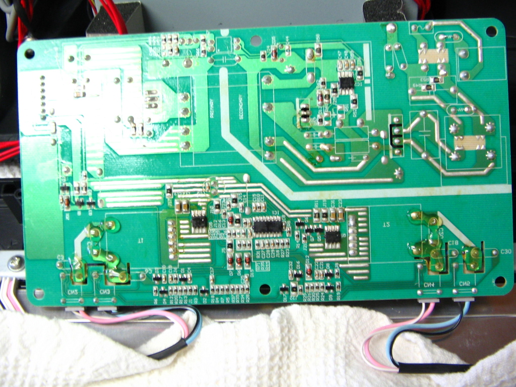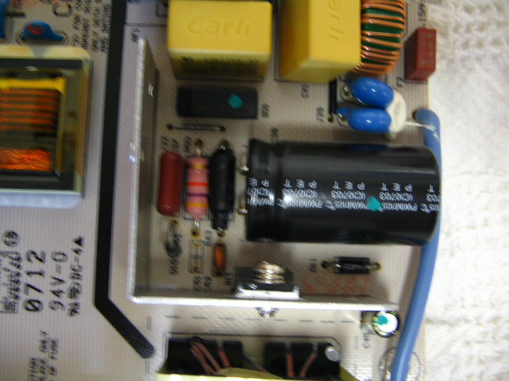 It's all dissassembled. I was surprised it has a Samsung LCD in it so I decided it was a worthy candidate. Power board looks OK. No dark areas or solder problems so I can rule out power surge type injury. I have a blue ECR meter but I need to assemble it. In the meantime...