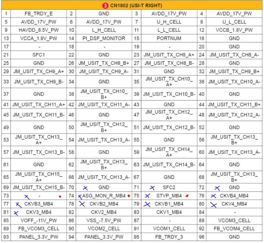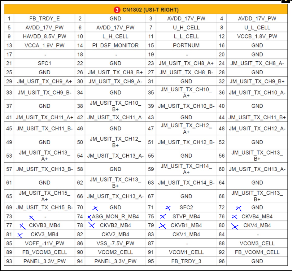 From looking at the pinout for connector CN1802 (right side) and assume this also applies to my set I can tell those below signals are blocked: