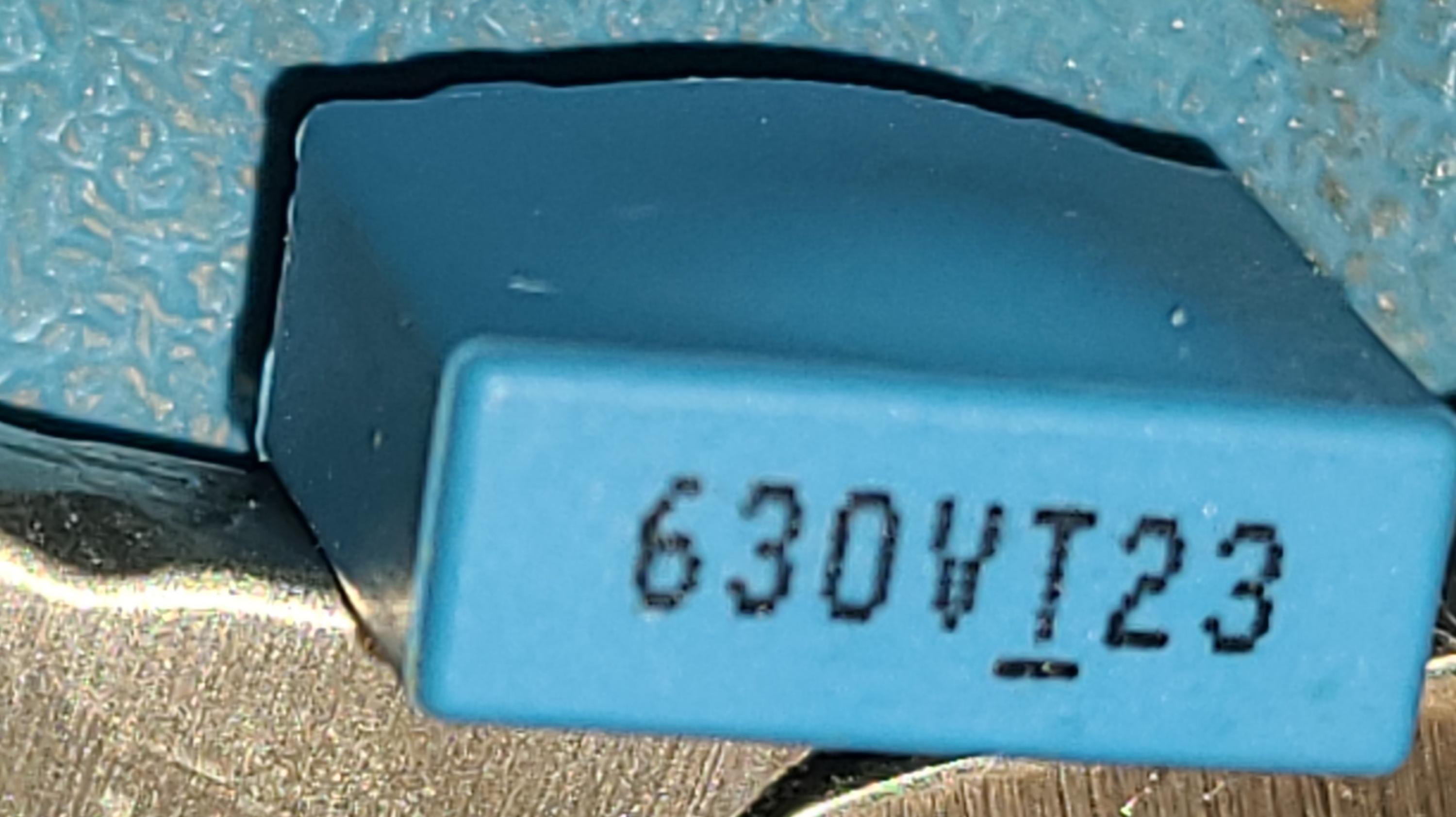 The only thing that I could find suspicious about the board, is this 630V Cap that is swollen and the epoxy cracked as shown in photos. It's not shorted, and it has about 2.2 nF measured capacitance. Any idea where I can get a replacement if you think it might be the culprit?