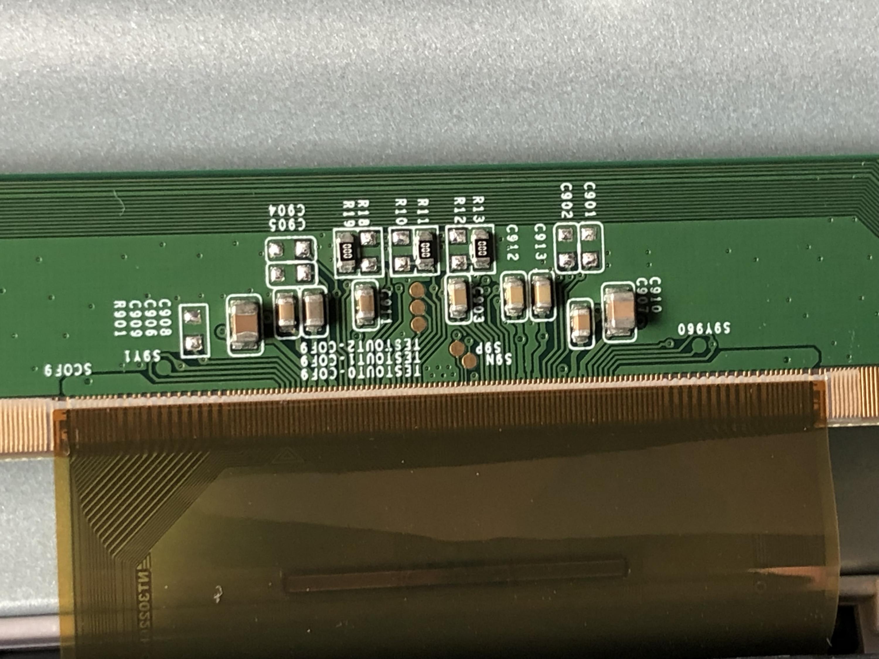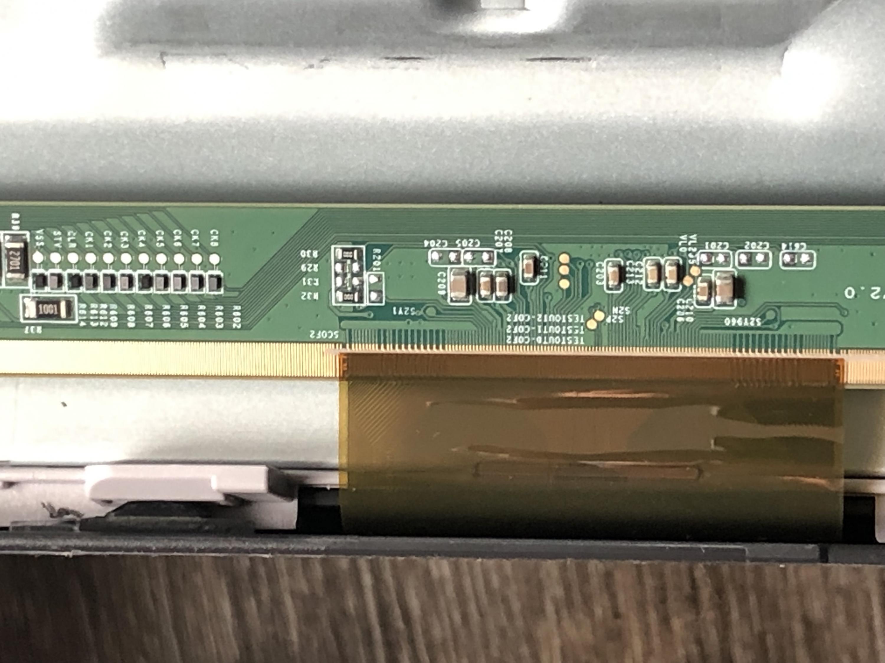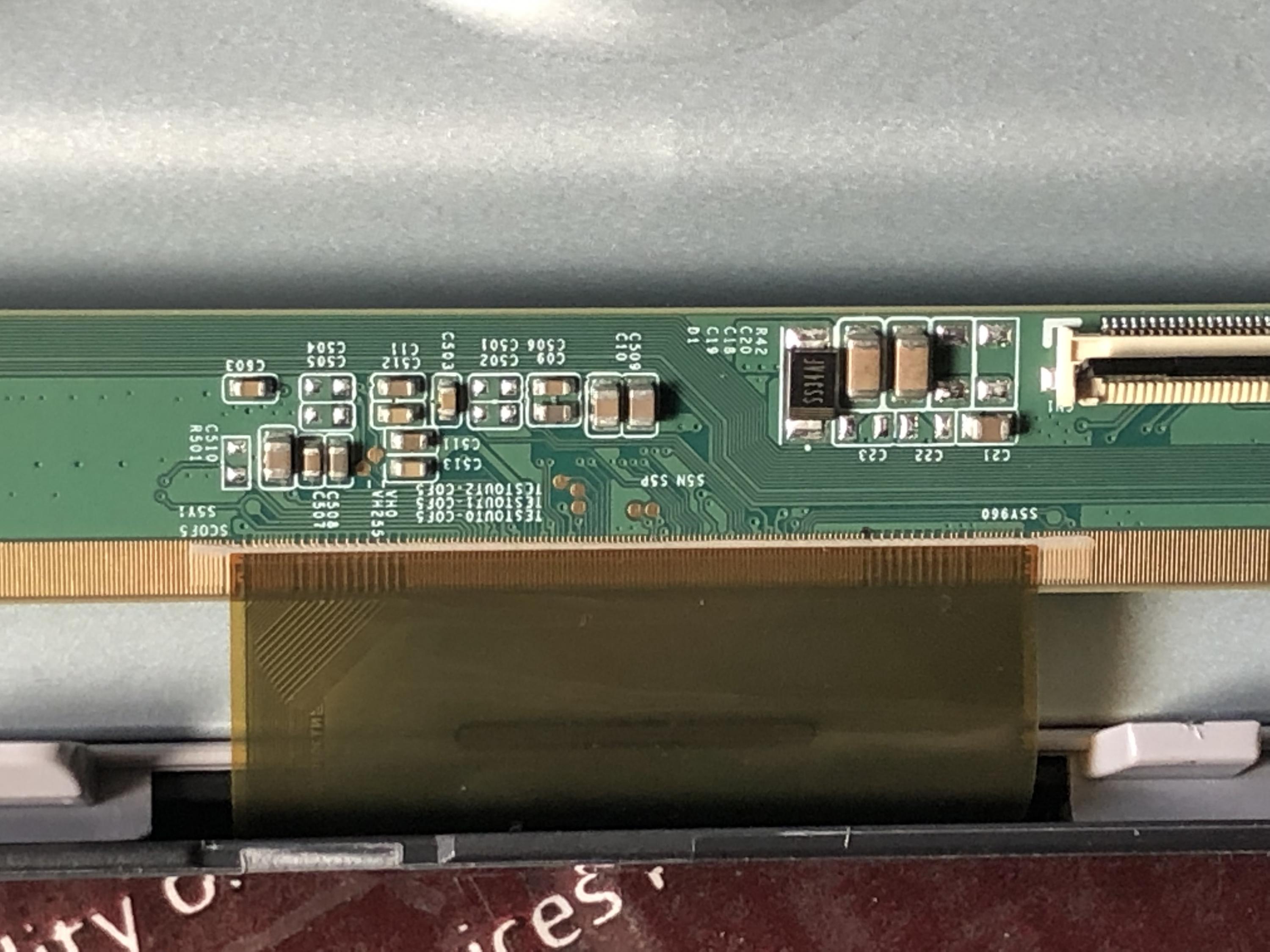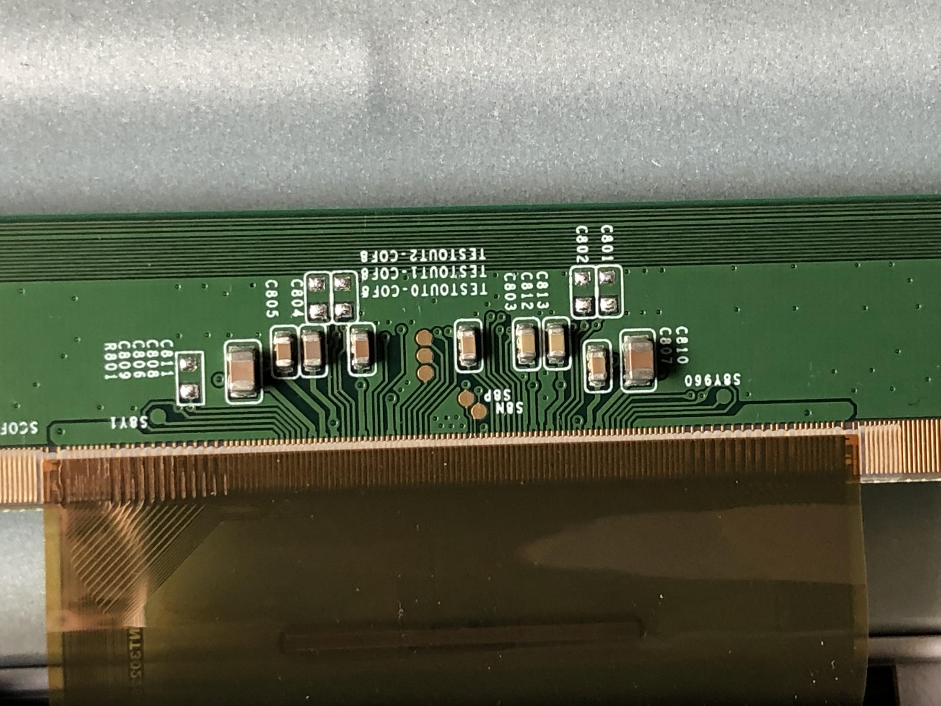I was thinking it's most likely a bad panel as well, but wanted some confirmation before I scrap it. I checked all the caps on the “driver boards” on mine and didn't see any issues there. The tape trick, blocking some of the pins on the ribbon cable did keep the TV on, but I never could get any image to display (menu, etc..), although I did hear the audio tone when selecting menu, etc.. from the remote. The best I got on the screen were a few lines of different colors. That was slowly testing by covering a few pins of the ribbon cable at a time until the TV stayed on and didn't power cycle.