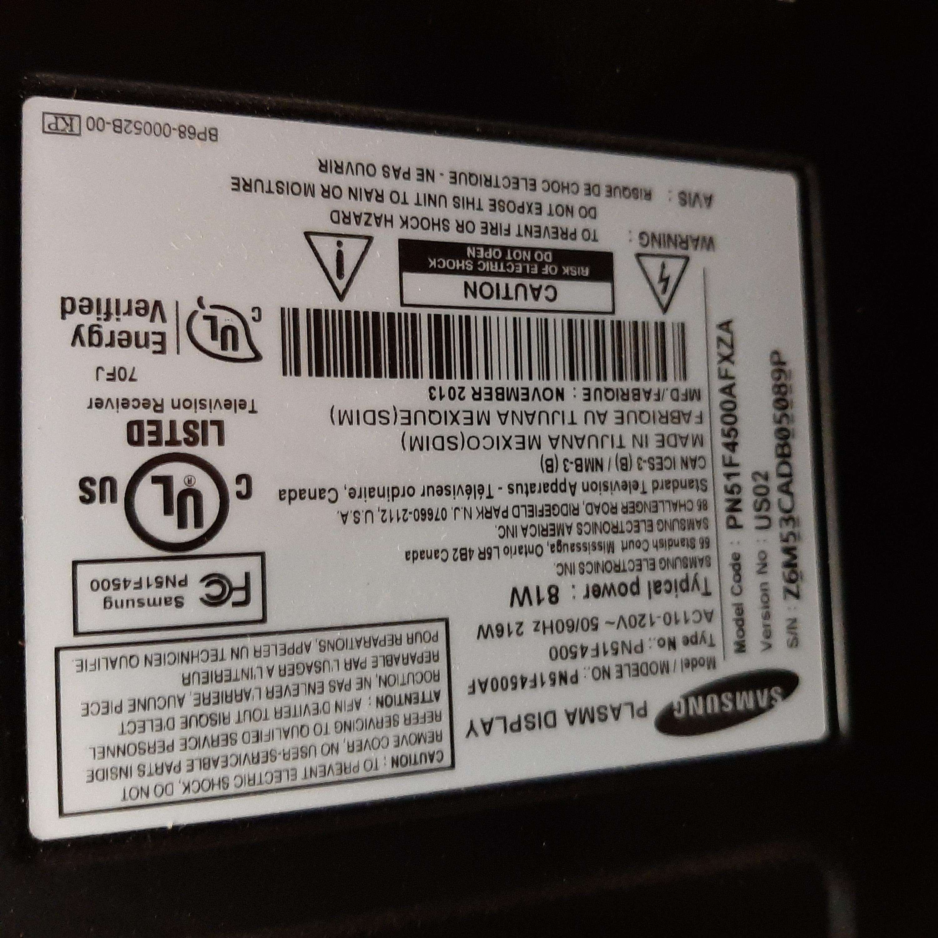 Have a Samsung plasma PN51F4500AF with no signs of life. no +5.3V when plug in and Main board disconnected. does anybody have schematic for this PWB ? Q4000, Q4002, Q4003, Q4004, and fuses are ok