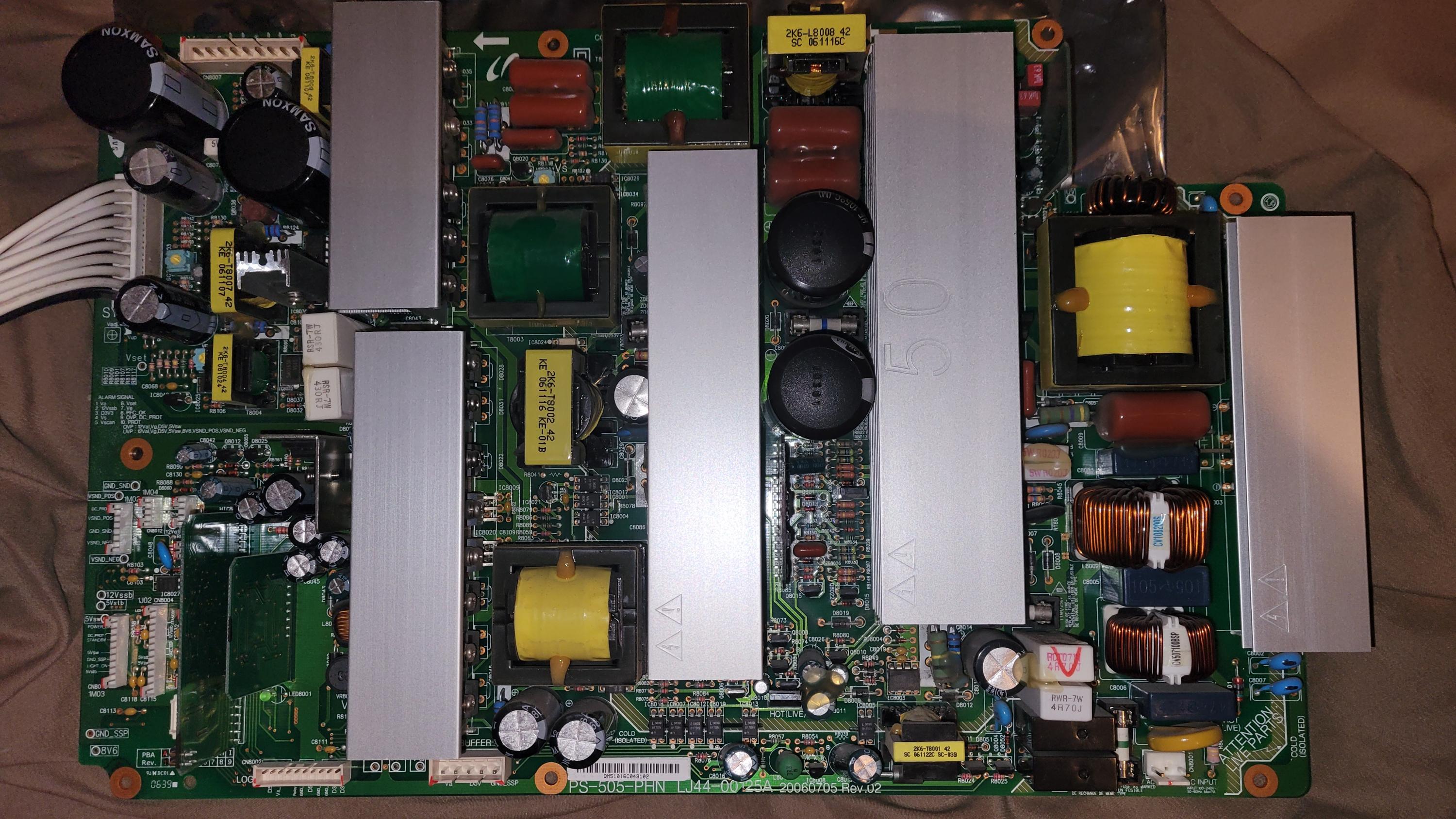 This board should generate two types of voltage, one of them is VSCAN, and the other is the equivalent to -VY, since this is a Samsung board I can't find any test points and only one of the trimpots is labeled(YRR).
