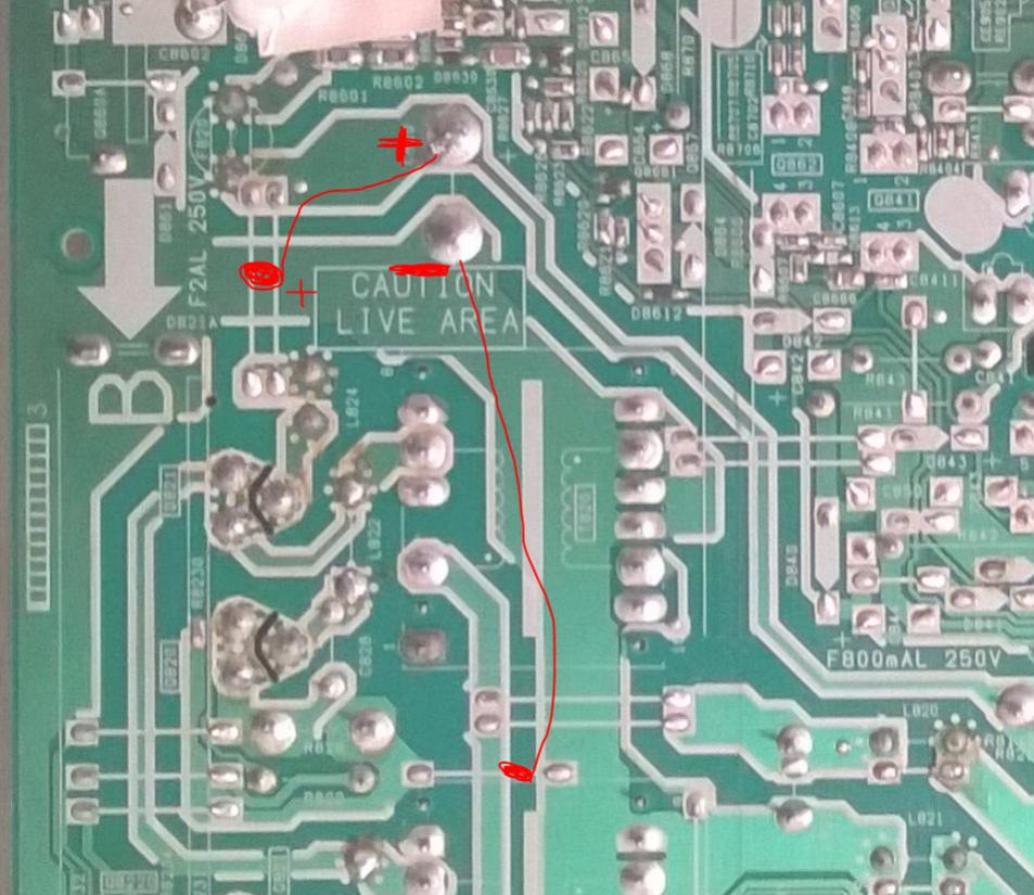 In post #12, careful high voltage, if it's around 400 v, powered on then your ffc is working correctly, about 160 when tv not powered on, measured in vdc mode, one probe on each leg of cap.