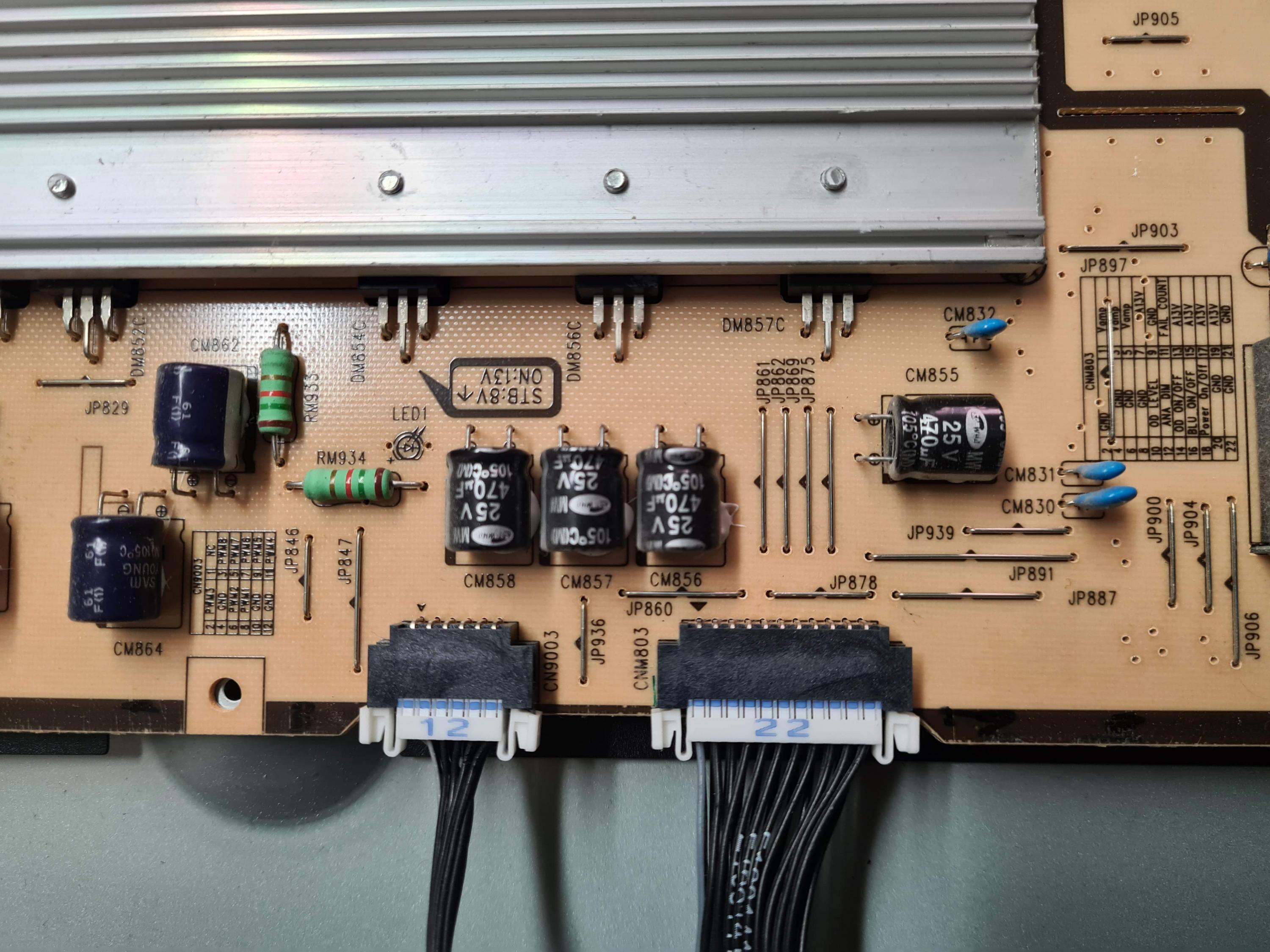 • Disconnected power supply from Main Board and TCON. (this model has a connector lead to TCON as well) -> Backlight lit on but have noticed that LEDS are purplish.
