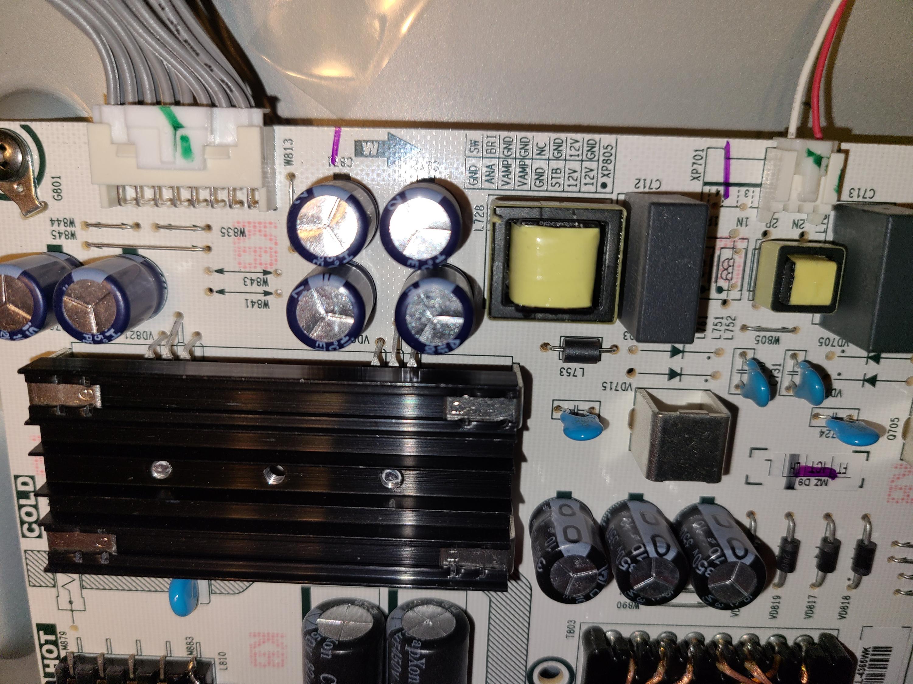 Hello all. 3 years back, with your help, I replaced the LEDs on this TV. It's been working great. Yesterday, I turned it on (garage TV), and it has blurred horiz / vert lines as you see in photos. Definitely no physical hit or damage. Top 1/6th of the screen is perfect. Could it be main / TCON board? No tabs to cut on this model. Thank you...