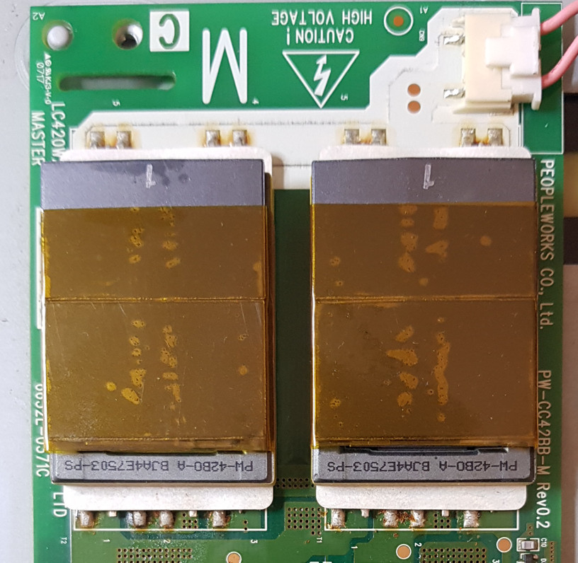 Then I tried disconnecting the left CCFL (close to slave inverter) and TV does the same 2 second to black but only the right side of the screen is lit.