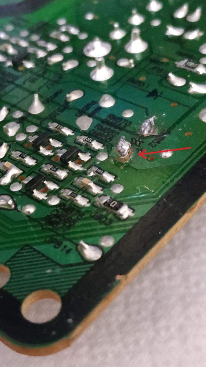 no visible burnt or blown caps or other components (it seems just dirt on the center).