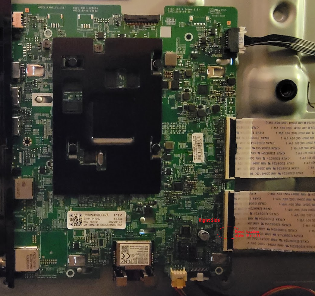 I recently was given a UN70NU6900FXZA that would only boot loop once plugged in (auto powers on when plugged in). I found that disconnecting the lower (right side) LVDS ribbon, then plugging the TV in, followed by reconnecting the lower LVDS ribbon will allow the TV to work 100% normal as far as I can tell (no lines, no discoloration, no dimming or anything like that).