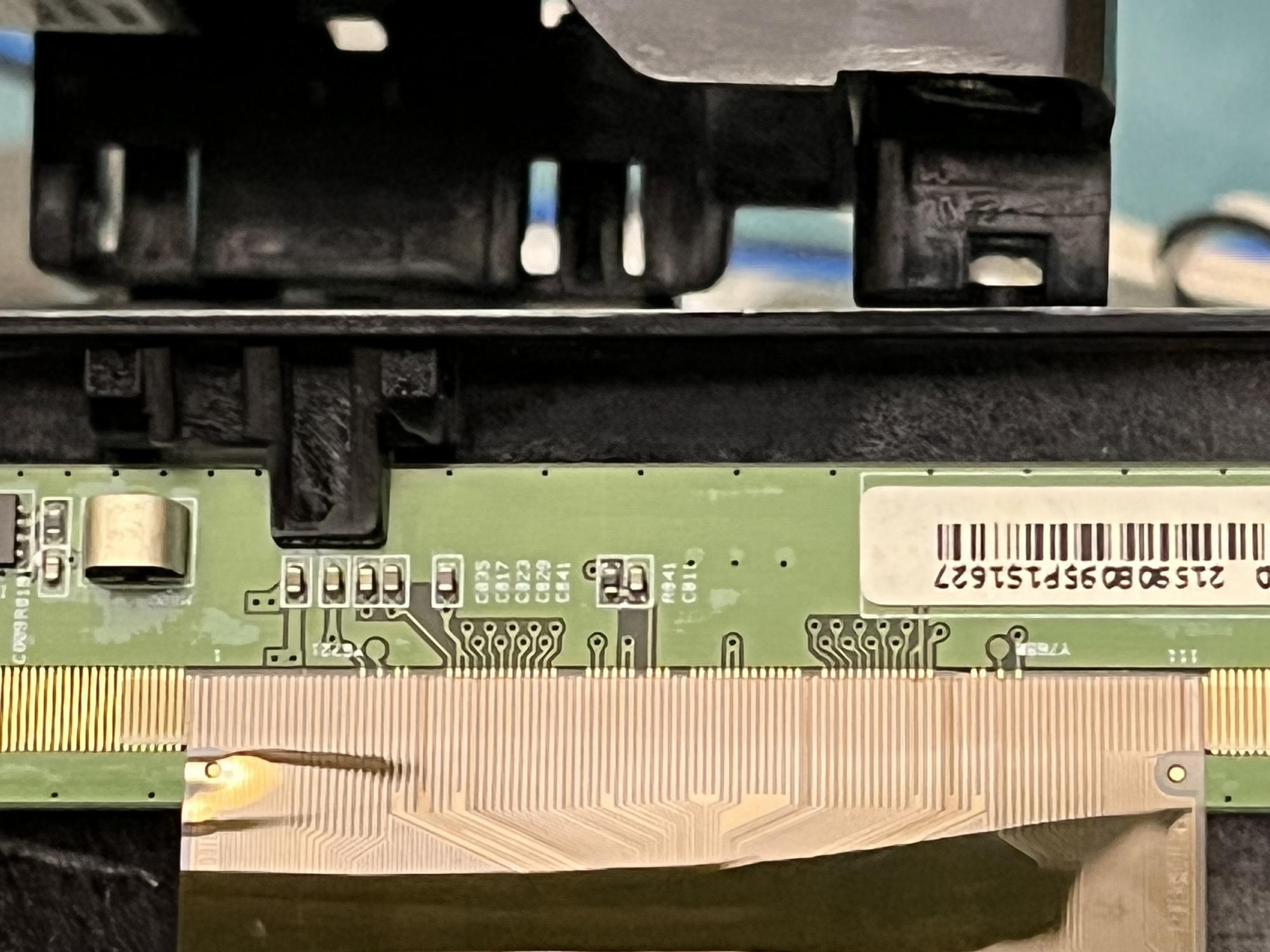 If there is low resistance on any of these lines, then the controller on the T-con blocks the power to the panel strips.