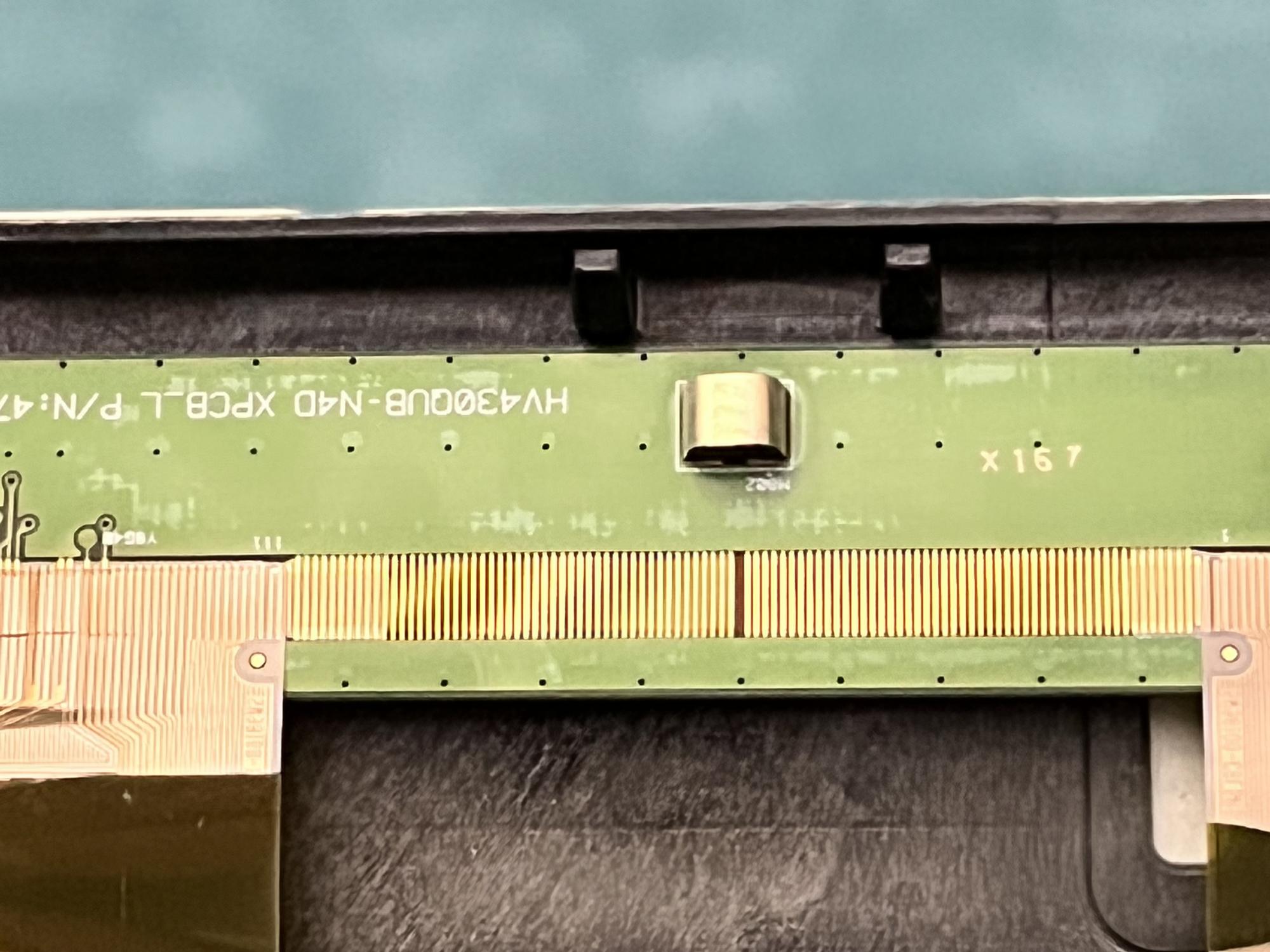 I've googled the issue and understand it is likely a panel/driver board issue, but was hoping the "tape method" could be successful. Before I did that though, I disconnected the left LVDS cable and powered the TV on. This time I got sound, no picture and the two blink standby light stopped. Did the same...