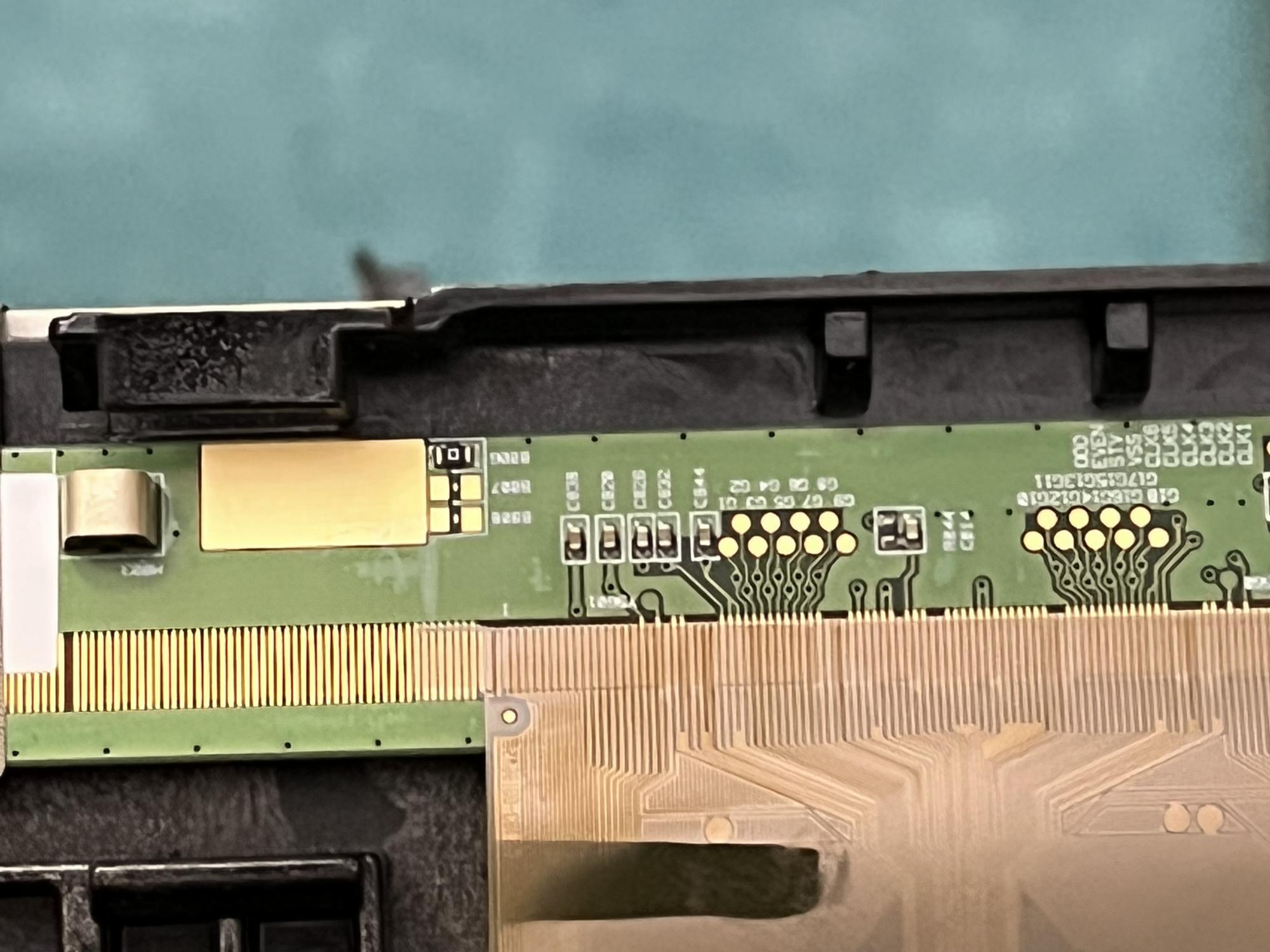 The pictures are of the driver board PCB so it's narrow -- anything blurred is in the background. The blue/cyan is just a towel on my table.