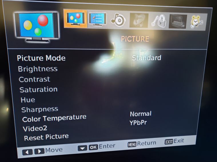 3. The controls for Brightness, Contrast, Saturation, Hue and Sharpness are not available from the menu (see attachment).