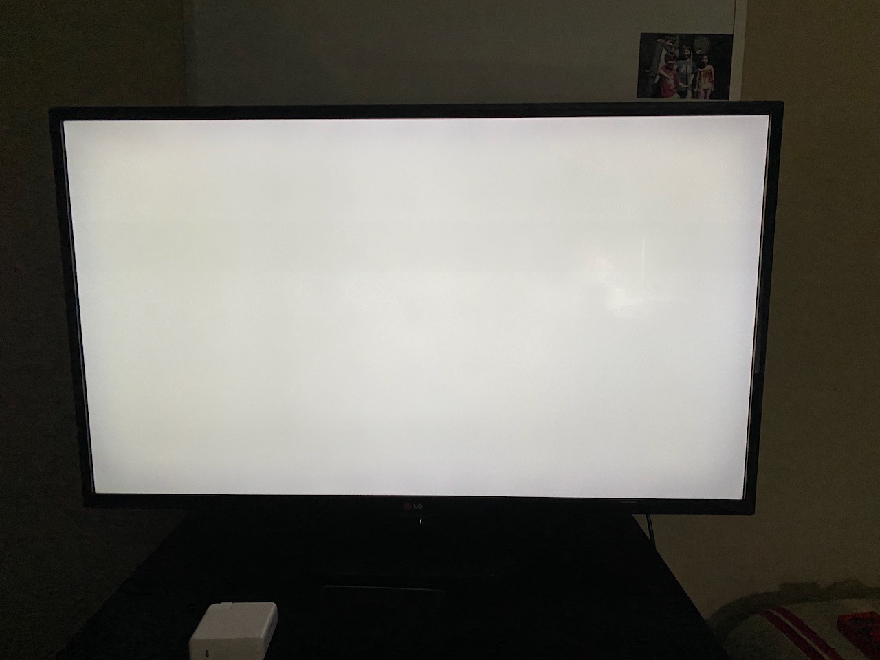 - When backlight is on and run white image test, shows no burnt out LEDs (see attached, uneven bright spot on the right center isn't really as visible as the pic)