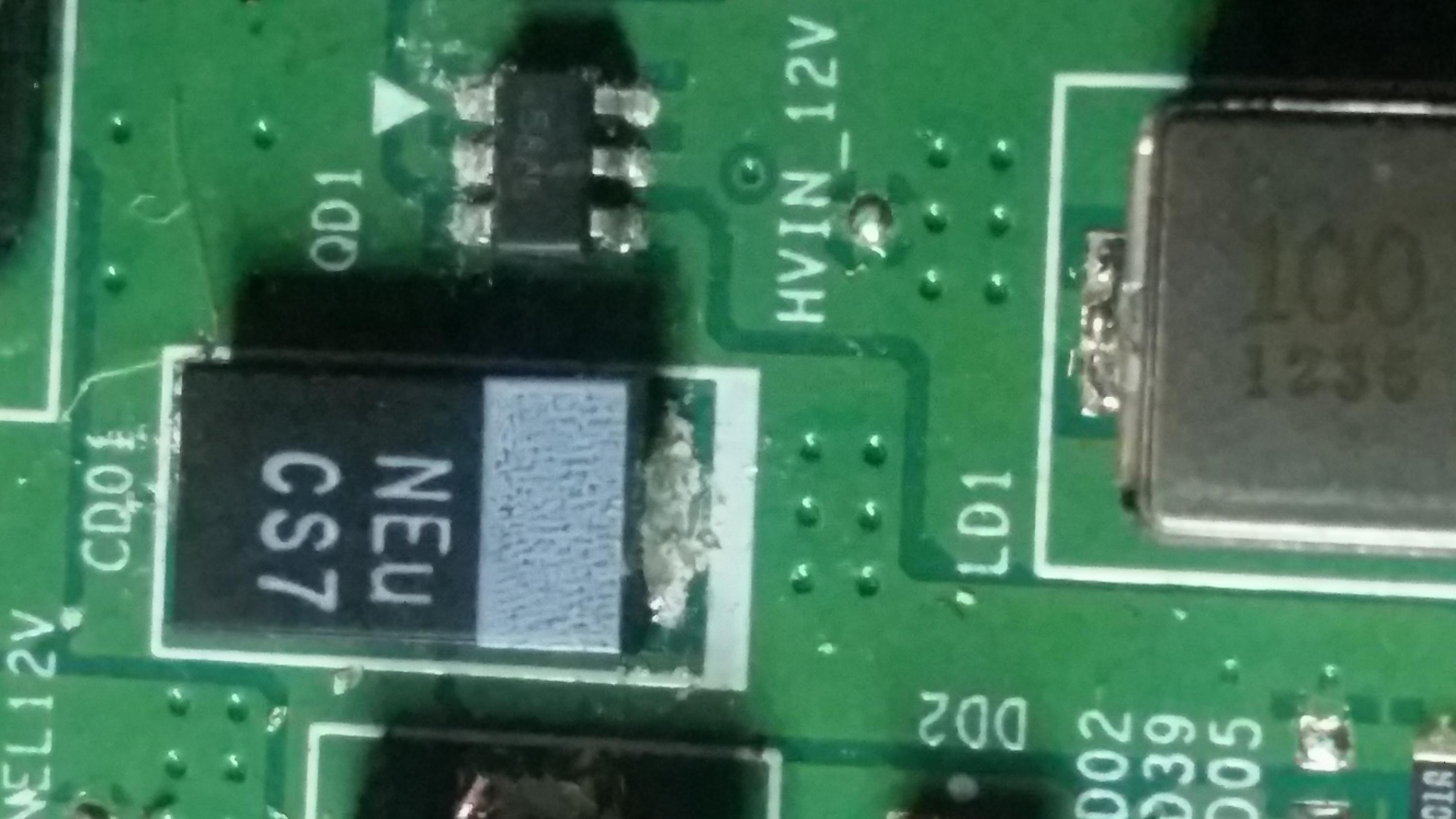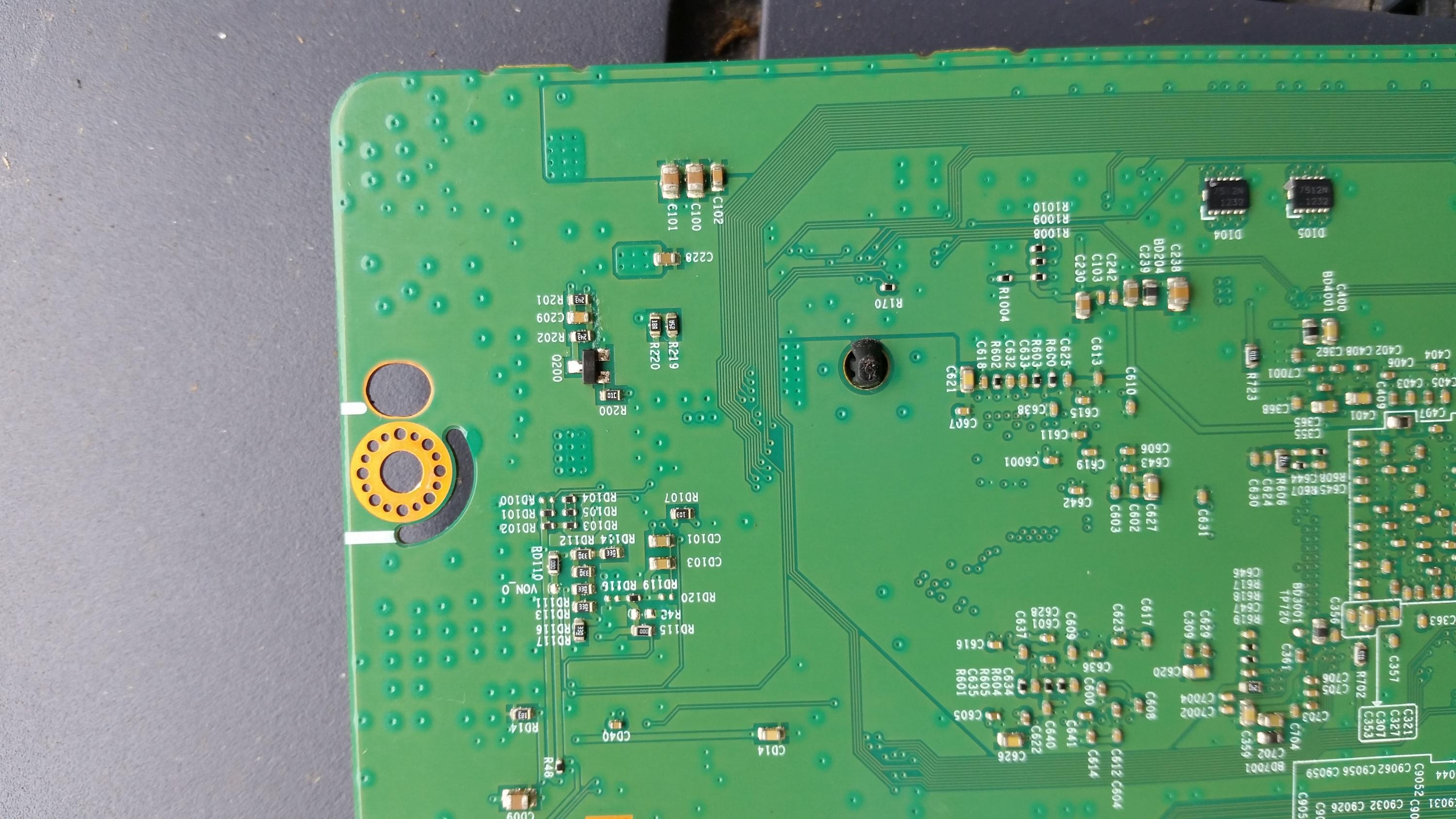 i removed 3 small surface mount ceramic capacitors on the front and lifted the leg of diode D100 but the short is still there.