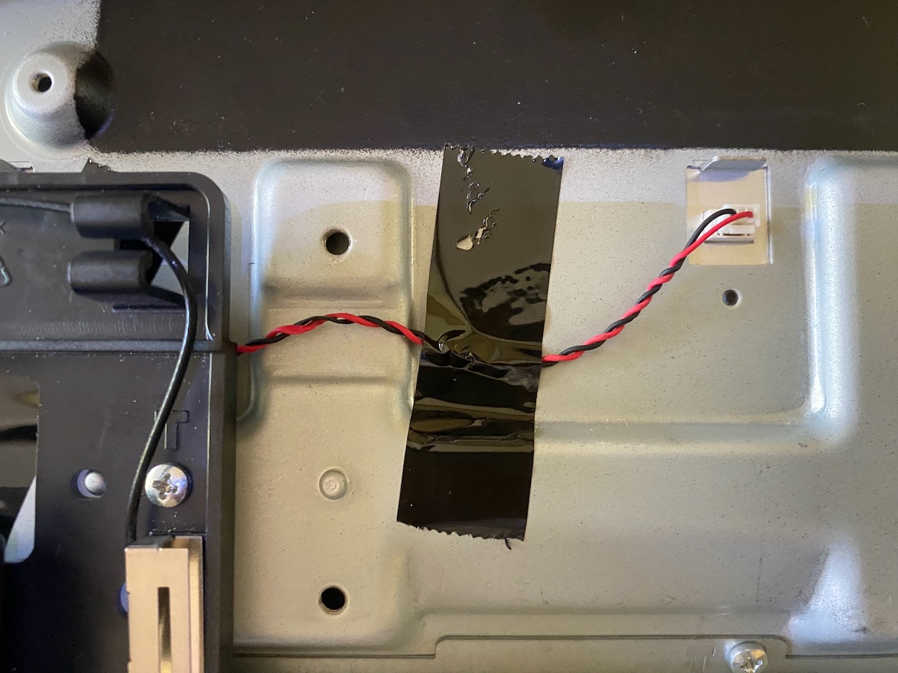 Attached a pic of it moved to the proper valley to avoid getting smashed. Close up will show the wires got smashed when it was up on the plateau where the blocks mounts flush. Had to separate the + - wire with a tweezer as it was smashed up pretty good. Will splice in new wire for future safety.