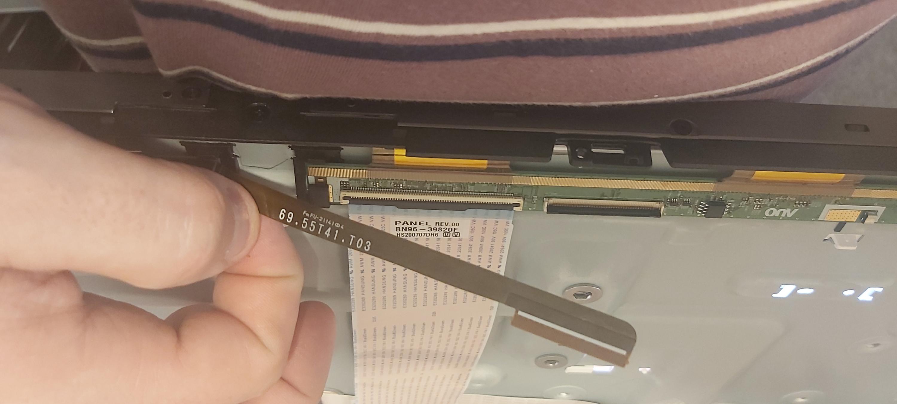 hi i have a Samsung as a above when you turn it on the back light comes on then flashes then the stand by light flashes 2 times the stops then flashes 2 times again . Then it cycles then does it again . i know the boards work as they are from a broken screen but i can still see the picture I've been told it could be a bad panel .Also when i disconnect the ribbon going to the main boards connected to the screen the back light comes on and stays on any help would be apricated I'm quite new to this but want to learn