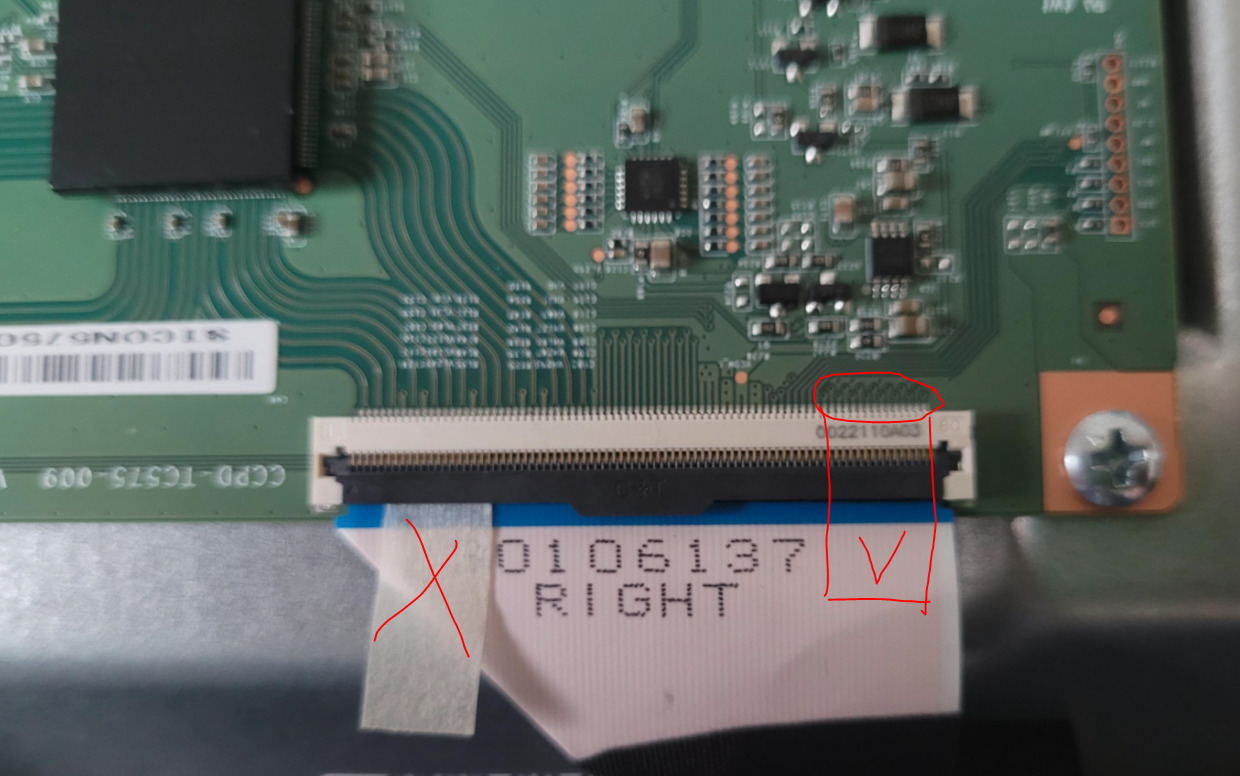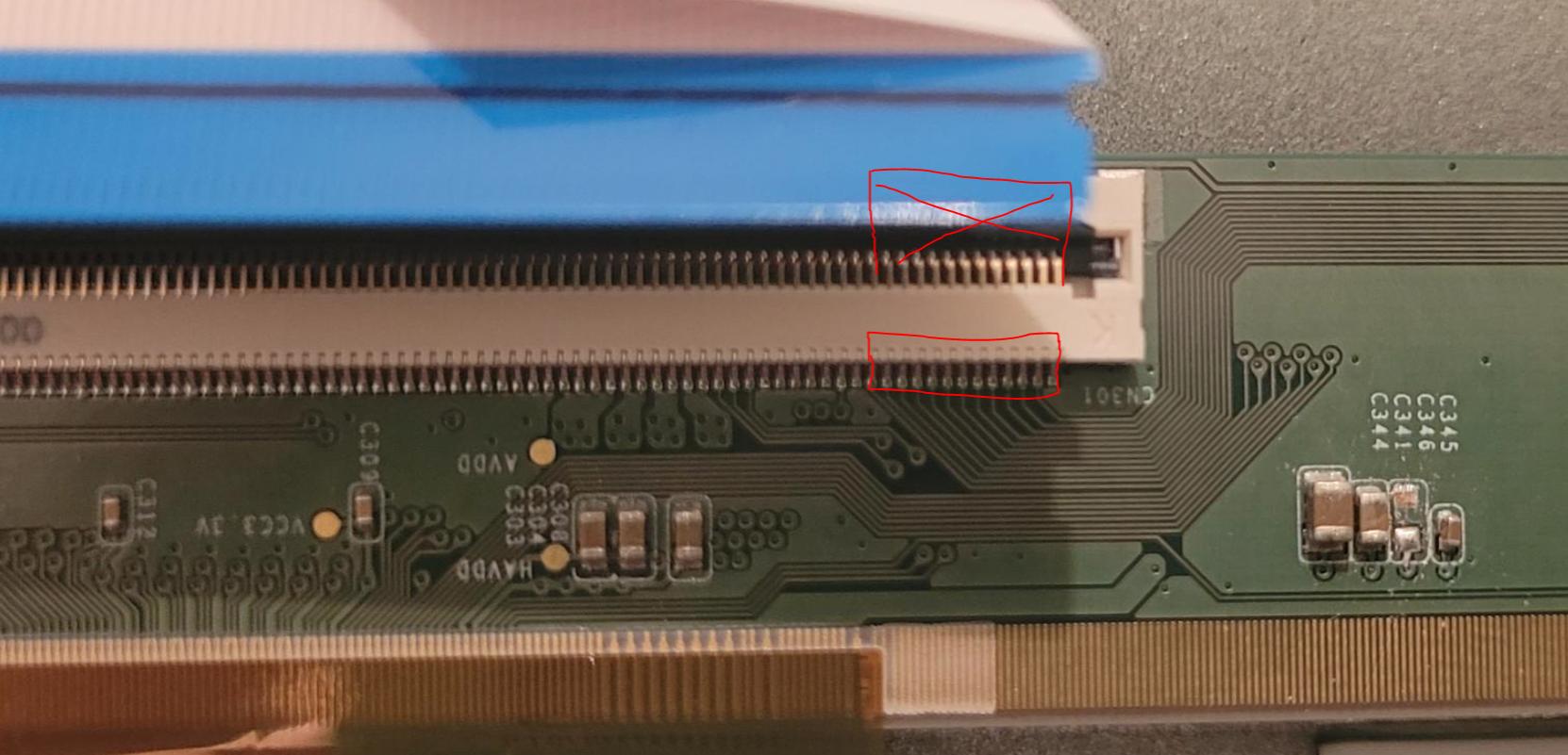 If i dissconnect the left FFC cable from TCON to panel i have half a screen on the right. If left cable is connected always only the grey screen.