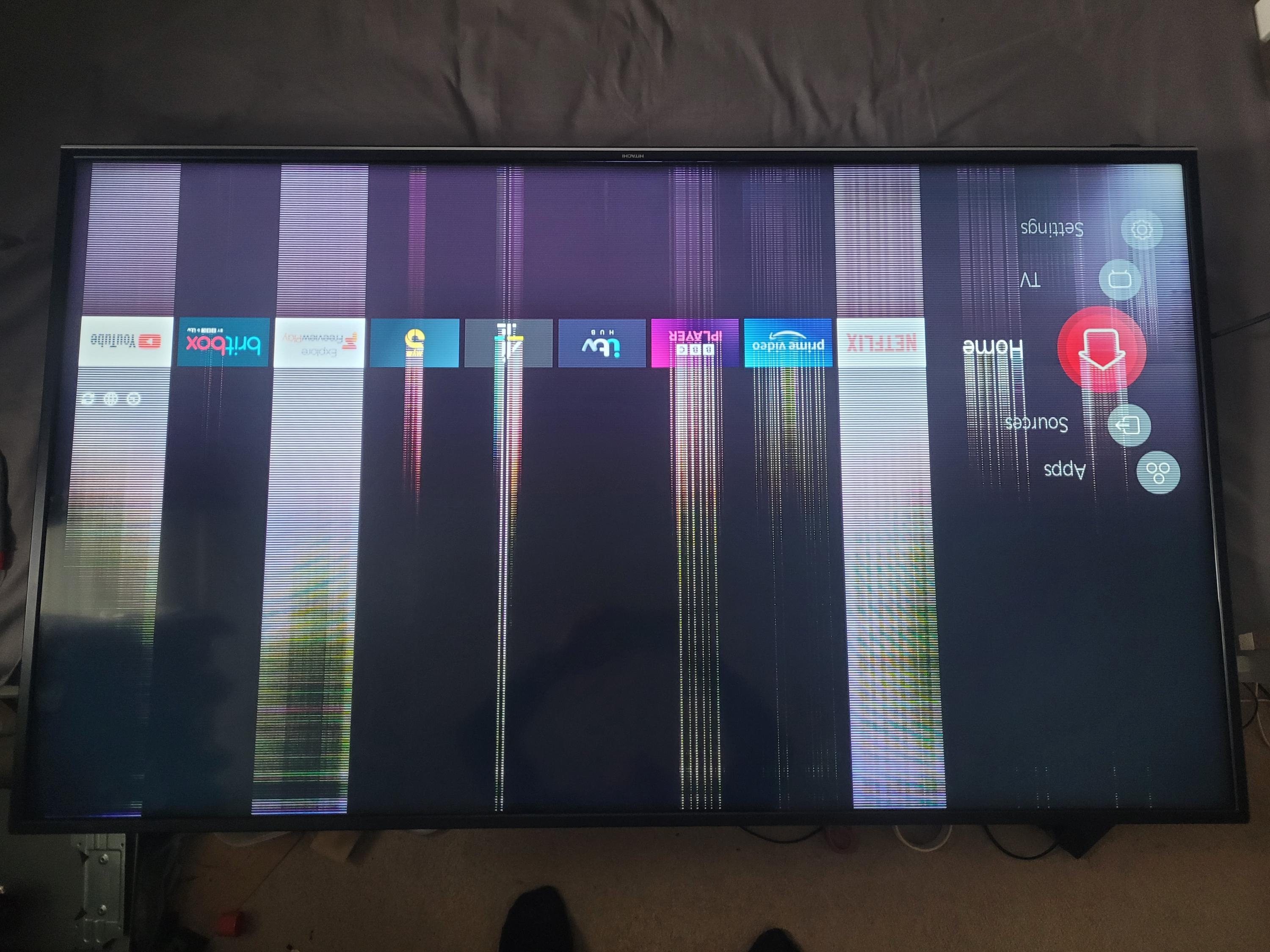 He had opened the TV from the back, trying to get to the backlight, supposedly gave up, reassebled everything and gave the TV to me.