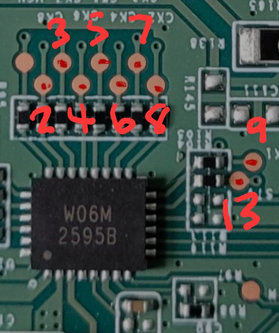 I have tested with multimeter, and have wrote the pin numbers where you have marked on the picture