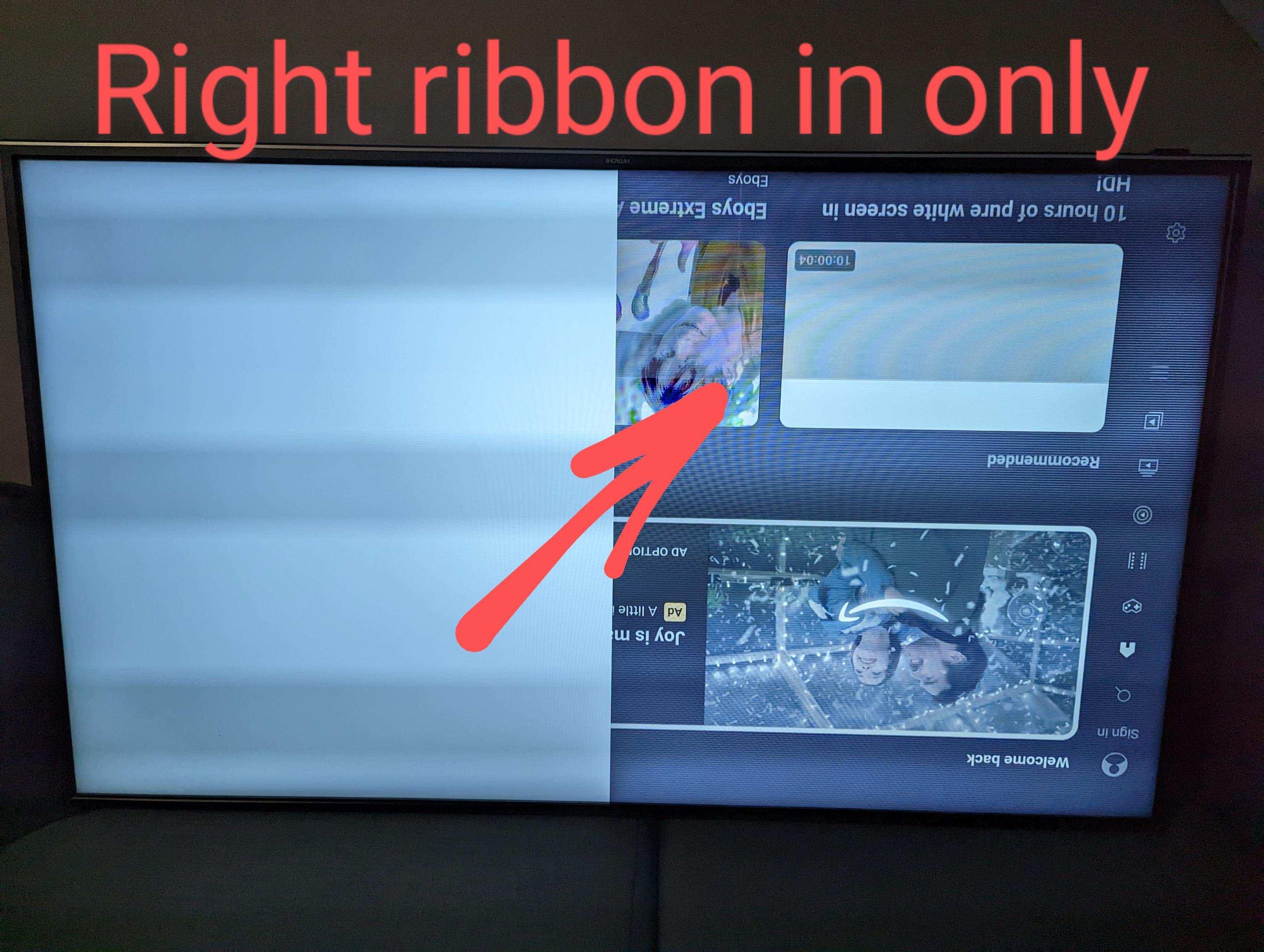 There is a thread on the same TV but with slightly different issues where they had to tape connection points on the ribbon cable, so I want to see if this is repairable by any chance.