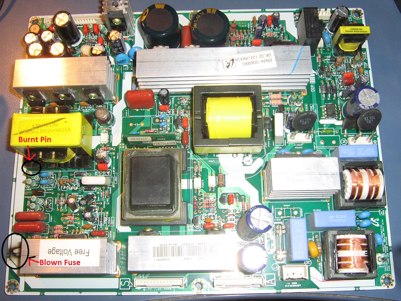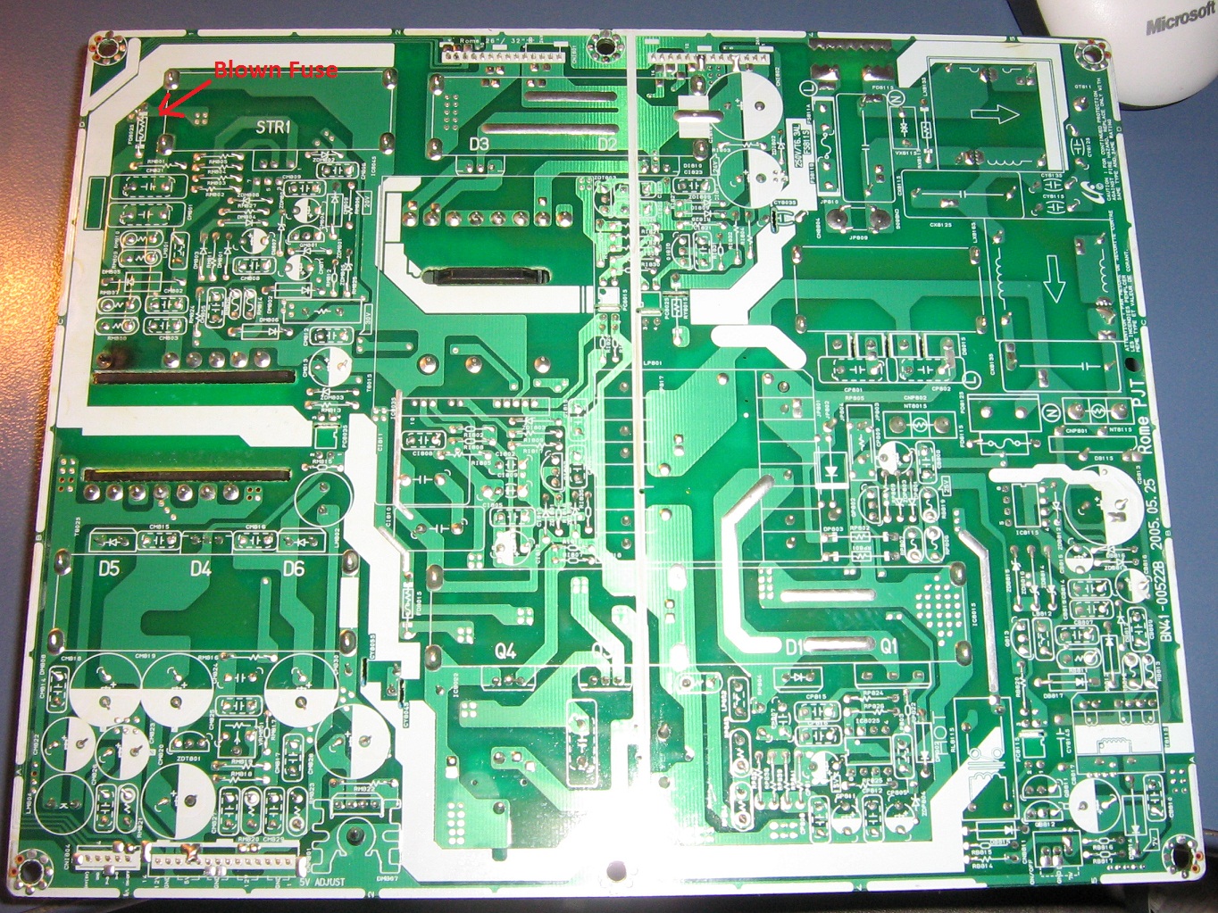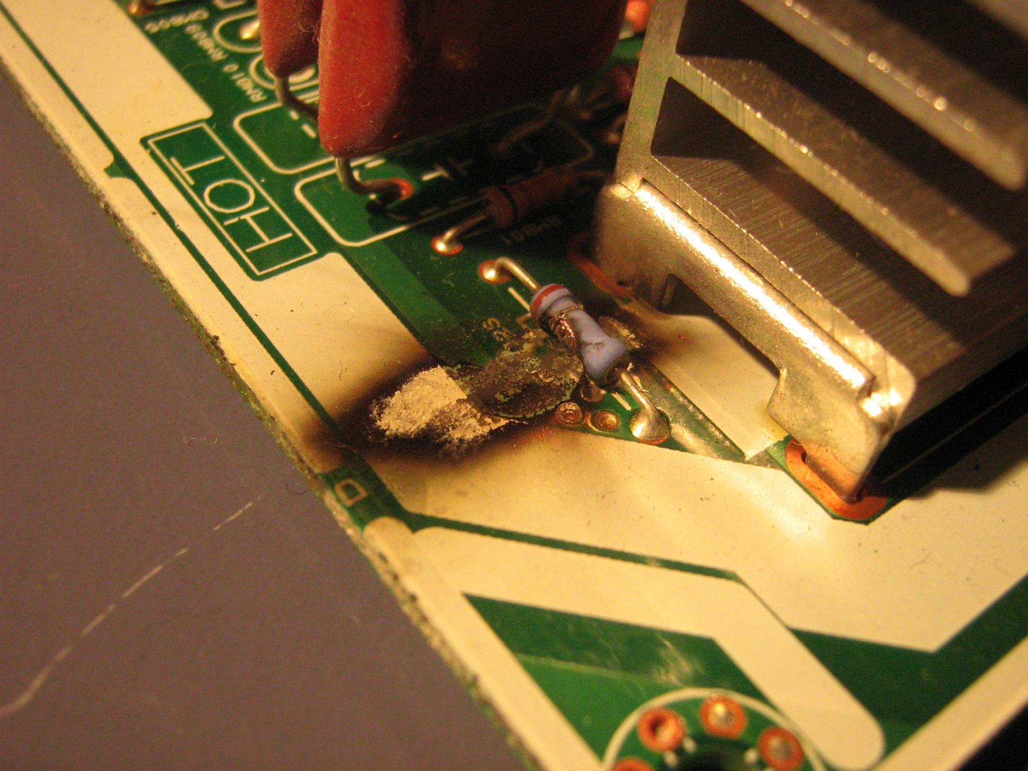 As seen in the pictures there is a burnt out component that looks like a resistor, however I believe is actually a fuse (labelled FD802S)