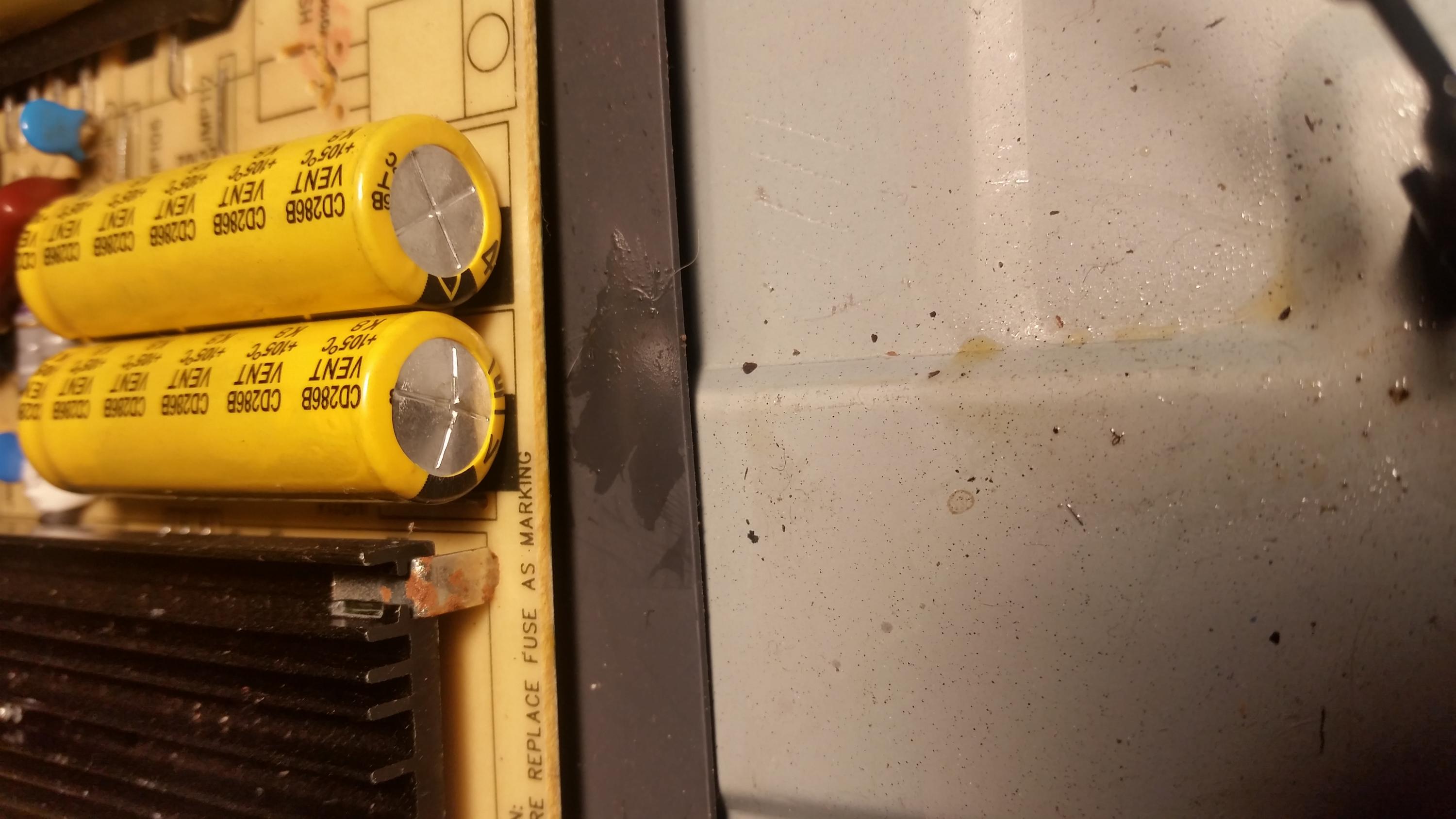 i unplugged it and took the back off and discovered one of the primary filter caps had bulged its cap and vented its electrolyte.