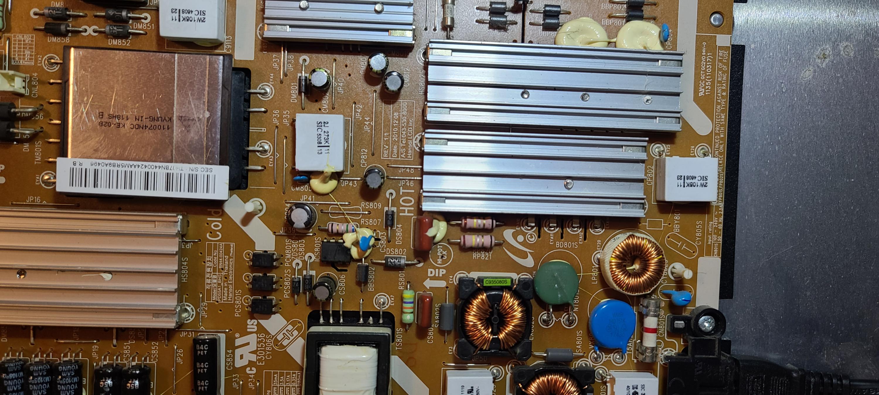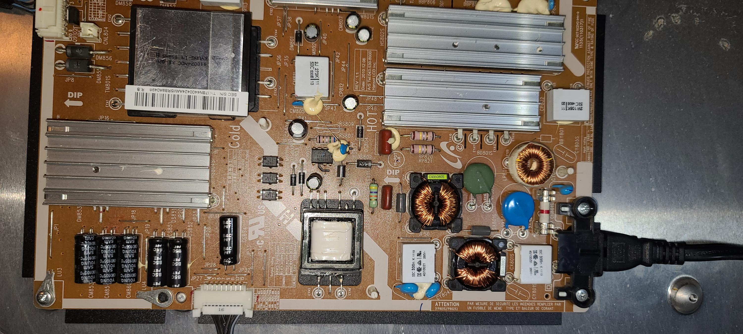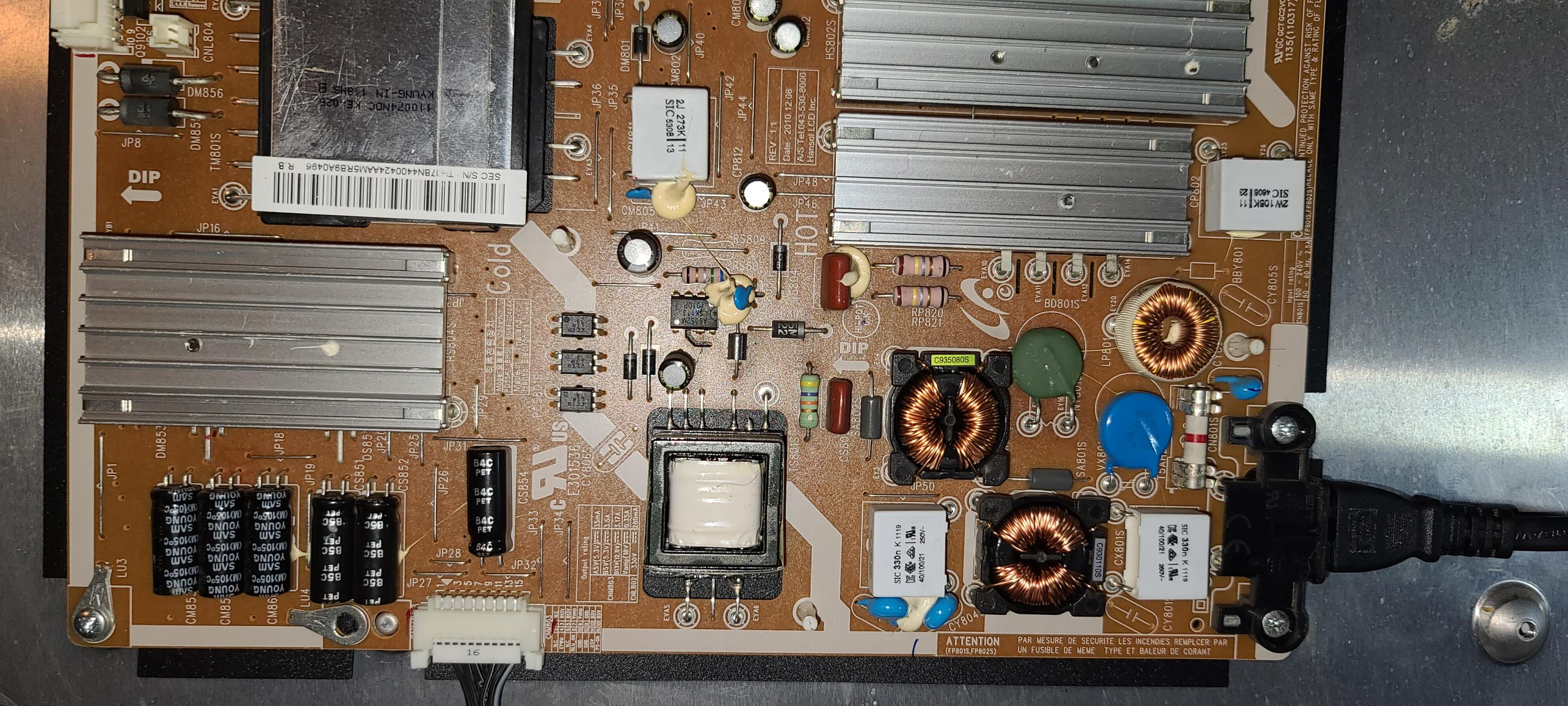 After having the logic board unplugged for the hour or so it took to take measurements, I plugged the logic board back in and the TV turned on.