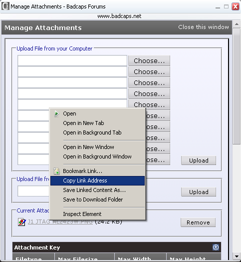 the "manage attachments" window will pop up and you can click browse and then browse and select the image you want to post on your hdd. If the image is larger what's shown in the "manage attachments" window it will be resized but in much lower quality than if you resize it yourself: