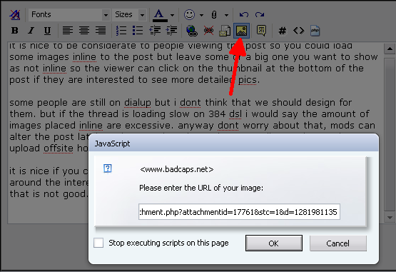 - some hosts have bandwidth limits on the images and it is annoying to see "bandwidth exceeded" instead of an image in the thread. yes badcaps will consume a ton of bandwidth from your free host.